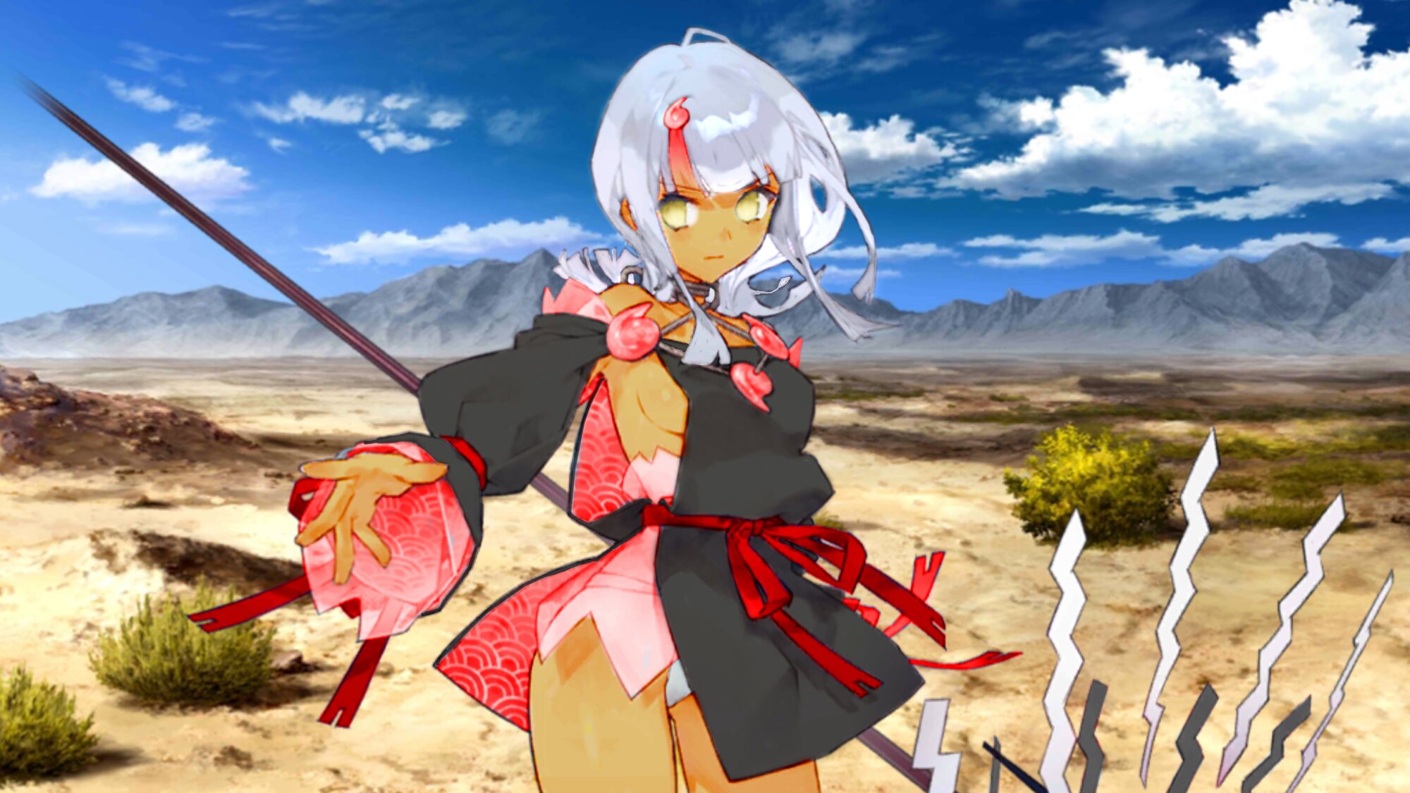 本当は目立ちたくないけどジャンケンで負けてレッドになってしまった。銀髪が可愛くてしょうがなくついつい課金してしまう悲しきモンスター!