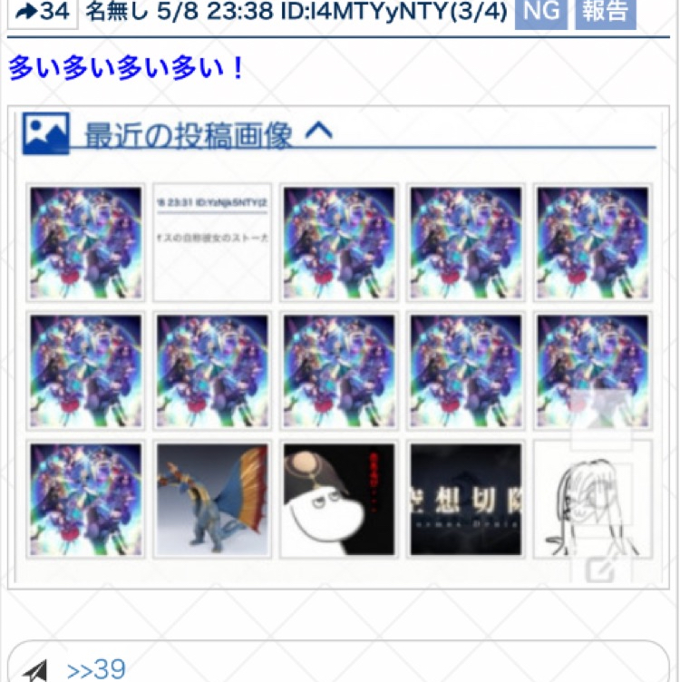 「おっスレ埋まるの早いなー」って思ってスクロールしたら全部画像でちょっとびっくりした