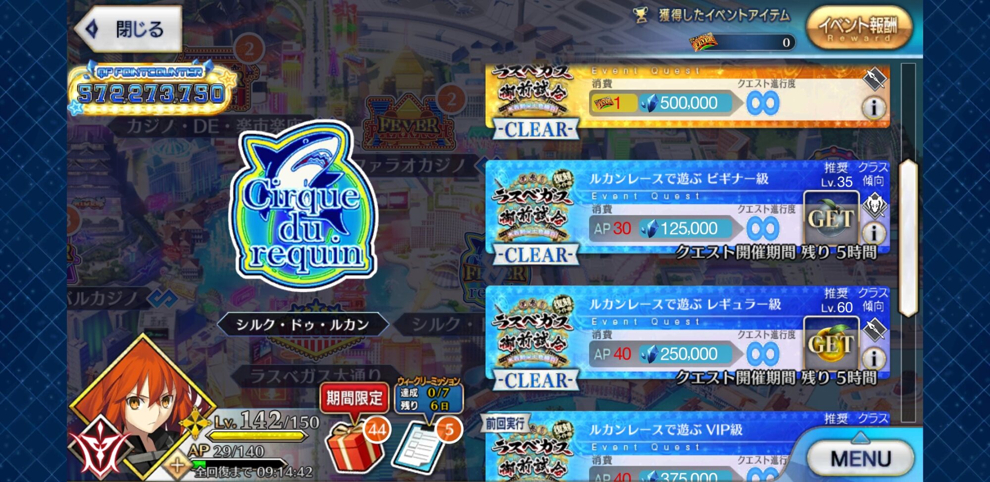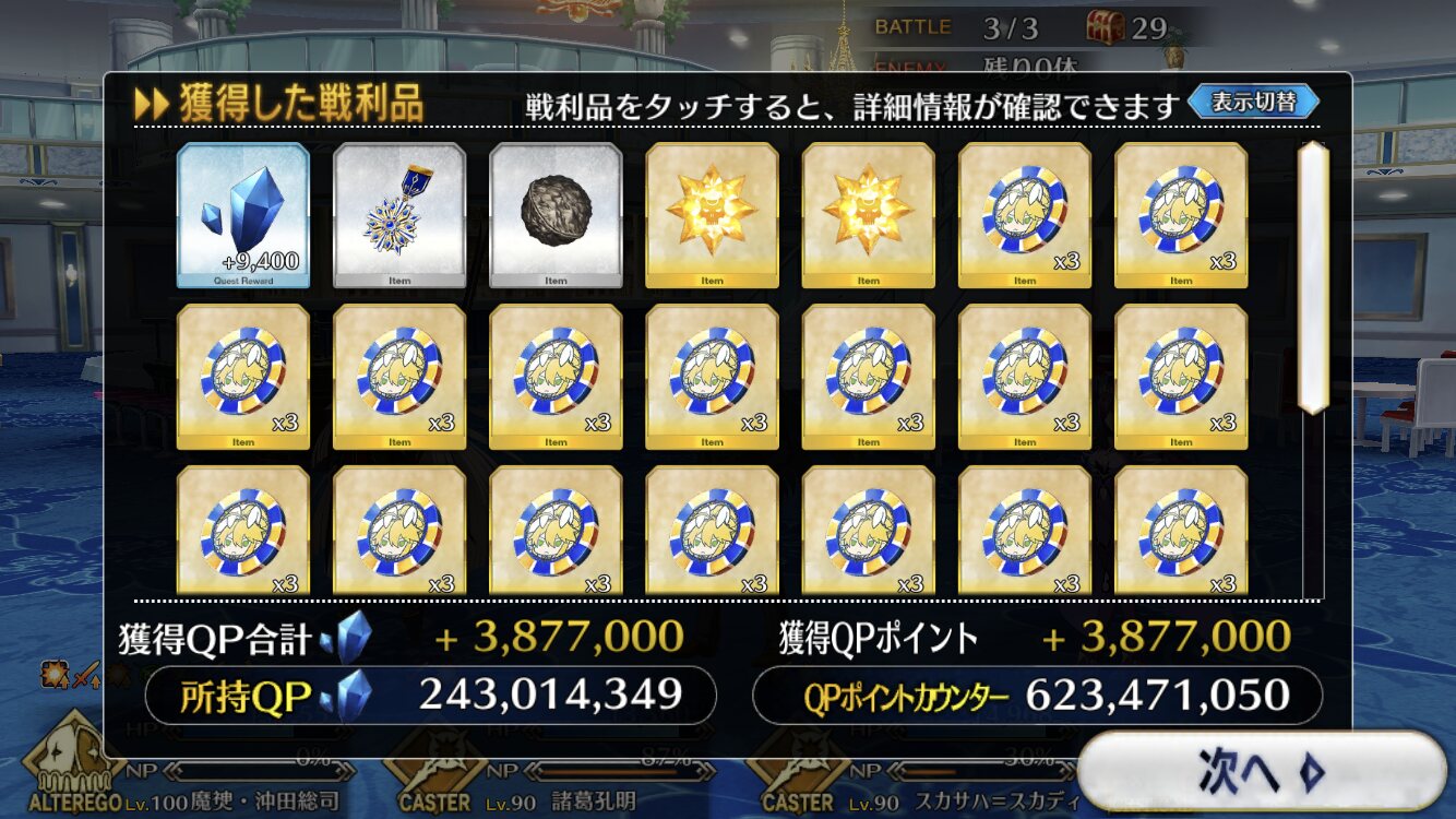 まだ14枚ある(げっそり)QPカンストしたし、ボーナスエネミー増やさずに周回すればAP効率が良いだけのクエストでうまうま