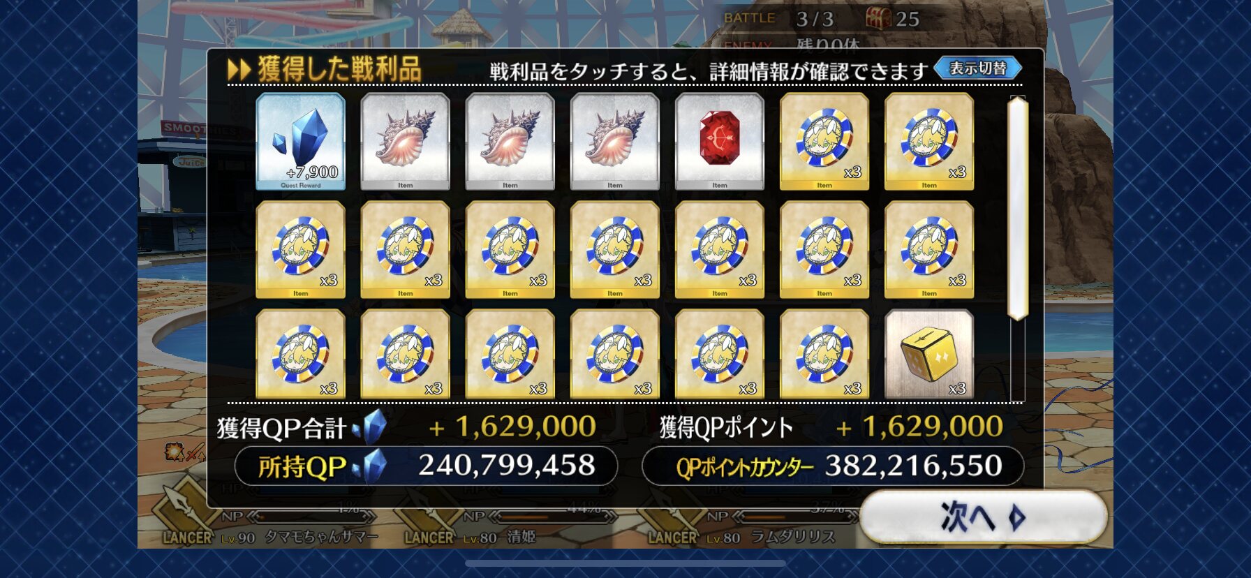 自分はQP効率無視して槍秘石狙いで周回してるし