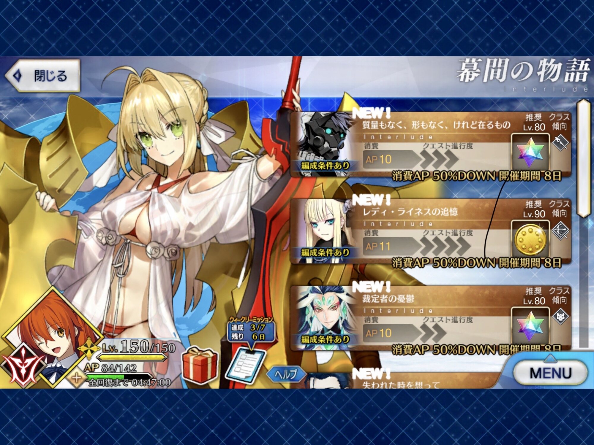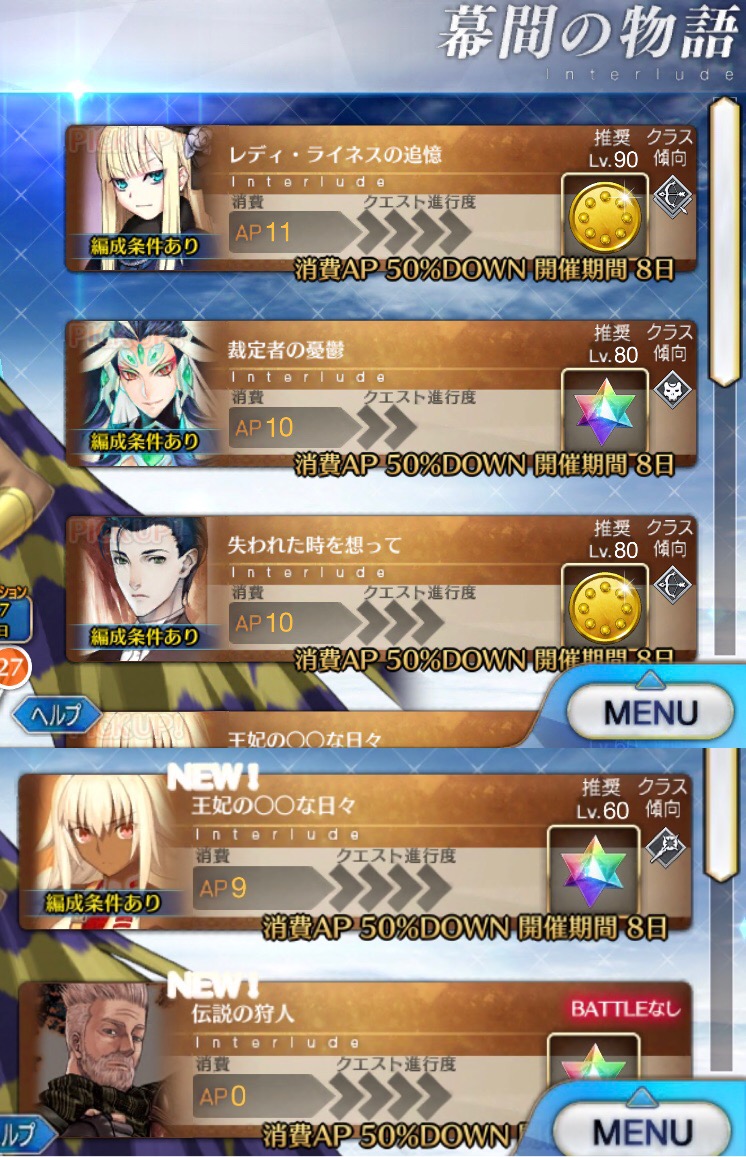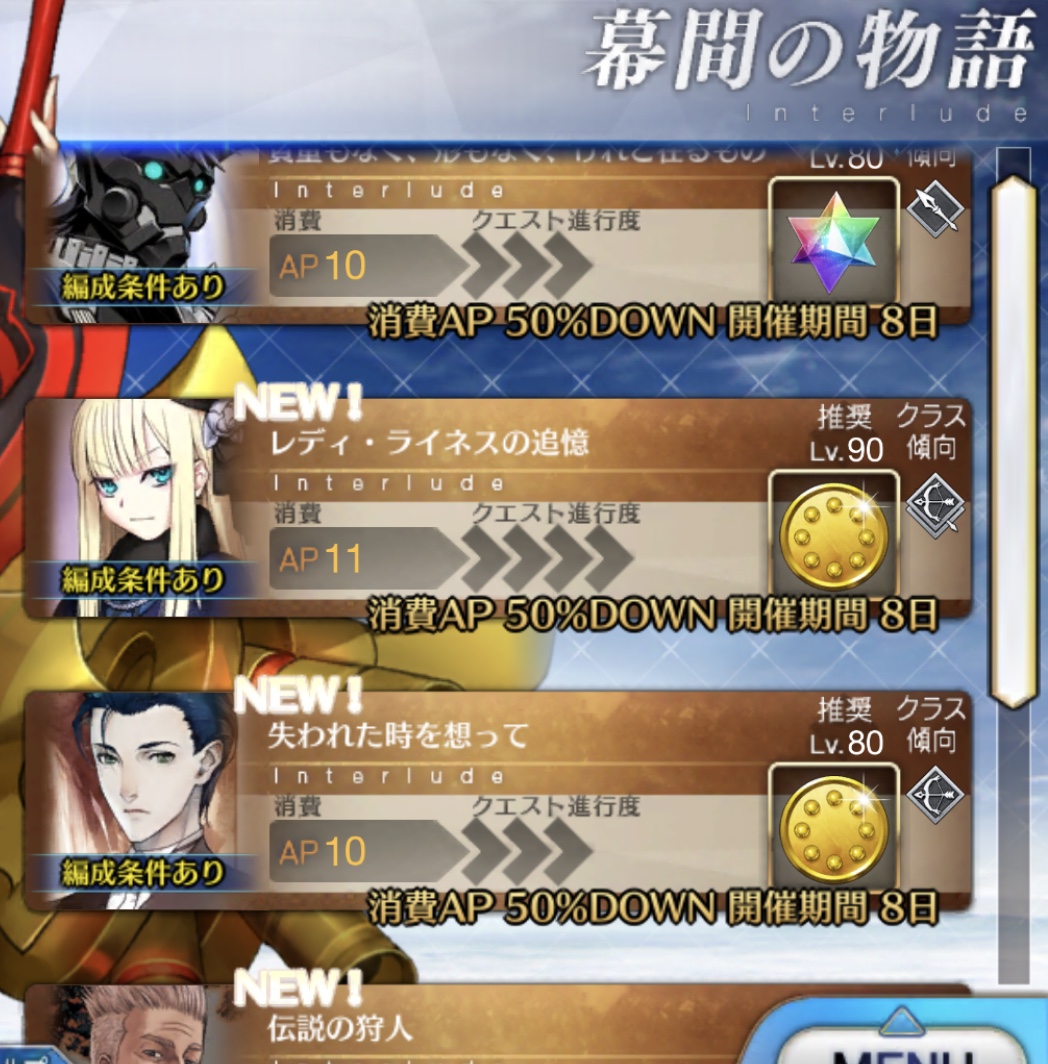 ウィークリーミッション一つ忘れて聖晶片回収し損ねた…おはようさん