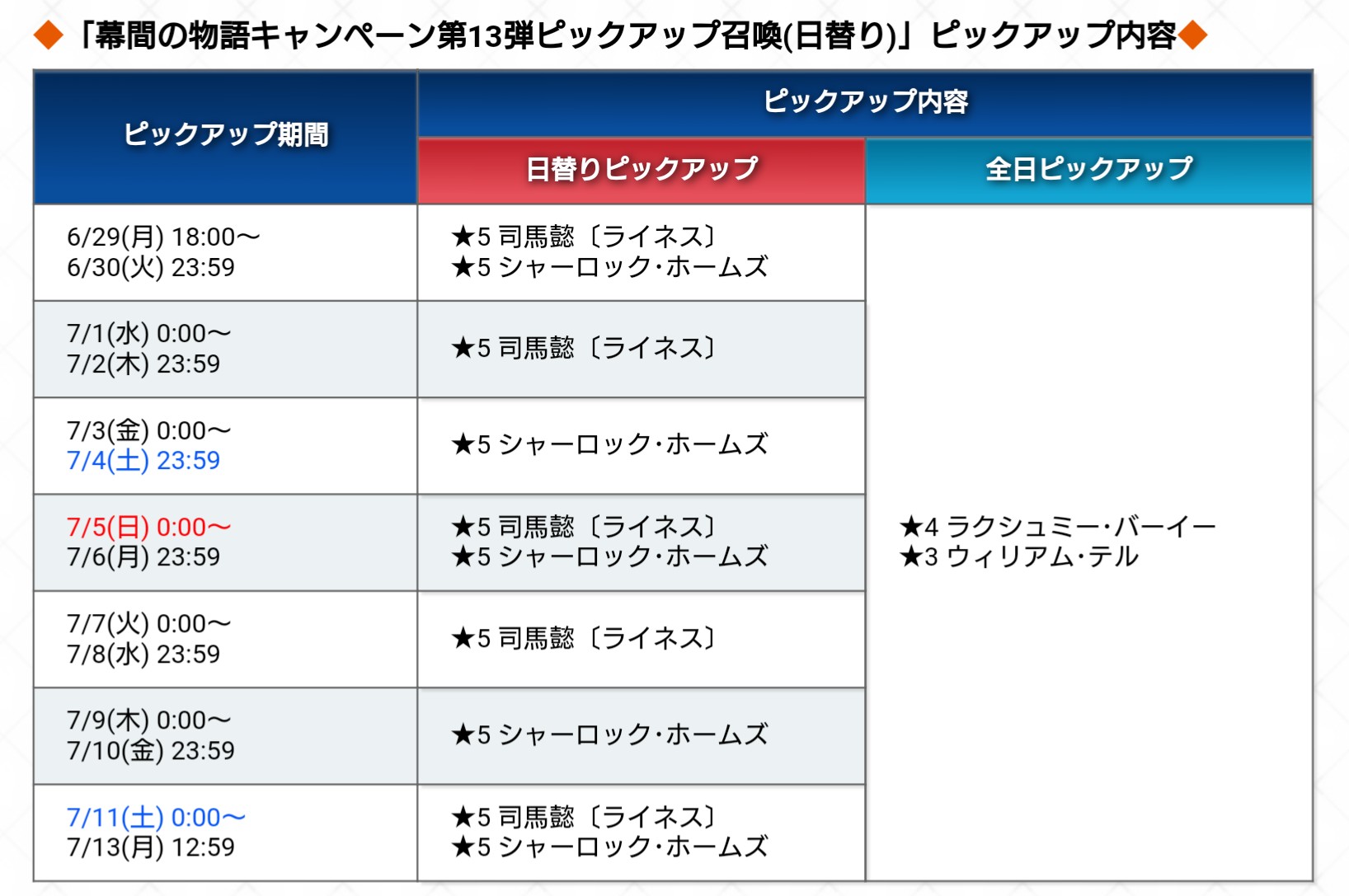ホームズ、デオン、叔父貴 と予想…去年の☆5霊衣は天草いい加減に四郎時貞だと思ったけど、今年は4月にピックアップしたばかりなんだよな、まだ早すぎる気もしてしまう