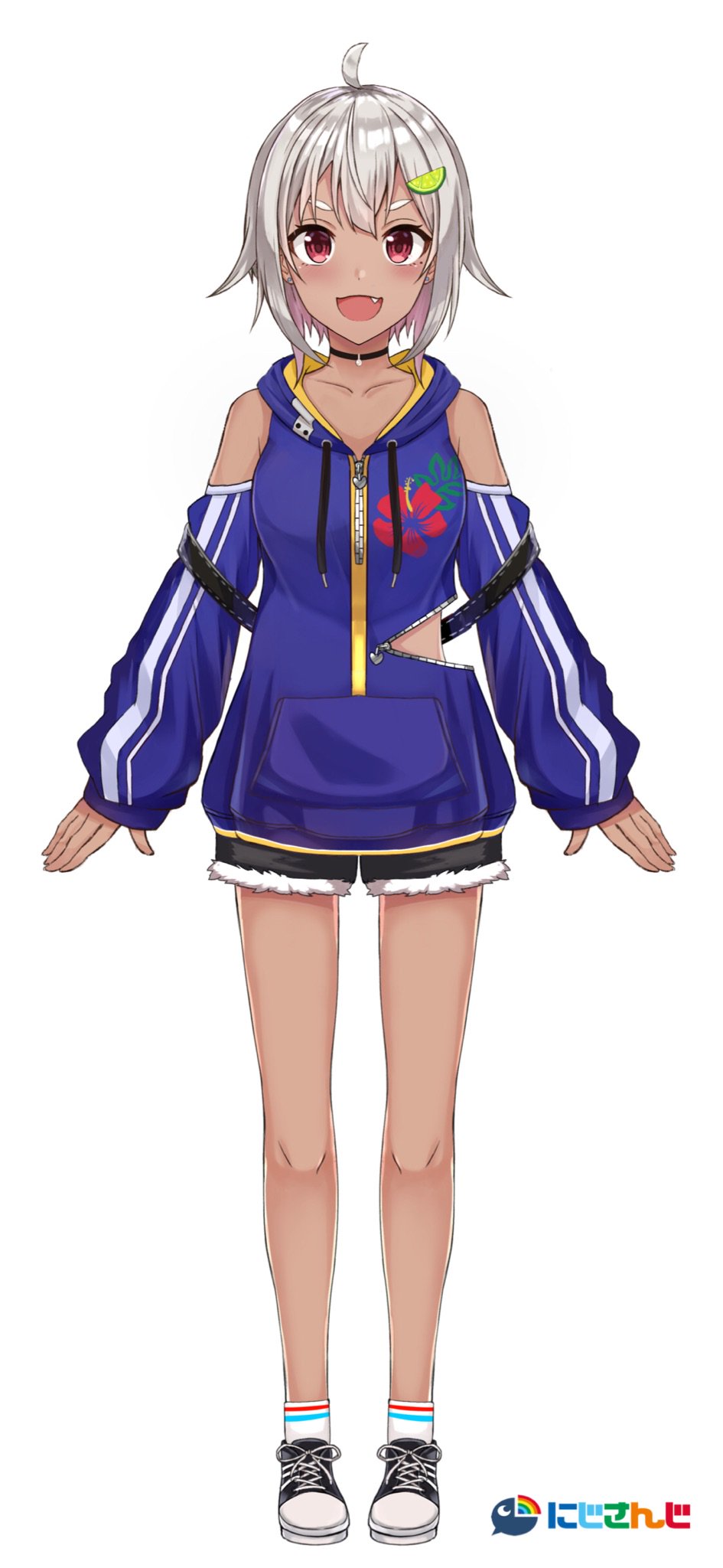 髪の色やファッションなど青い