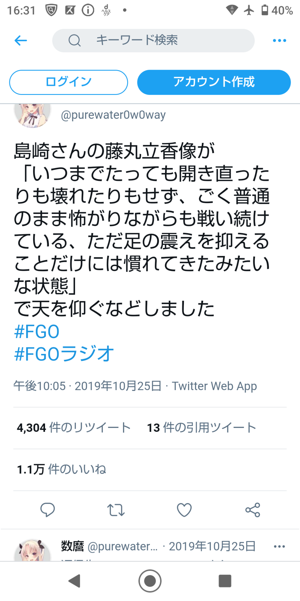 よくぐだは禿げたり発狂したりしないよな。正直半狂乱になってクリプターや周囲の人間に殴りかかっても文句は言われない境遇だと思う。実際に少しでも周囲に当たったらめちゃくちゃ叩かれるだろうし、それをやらないからこそのぐだの強さと魅力なんだとはわかってるんだけどさ - 10名無し2020/07/06(Mon) 12:31:45報告