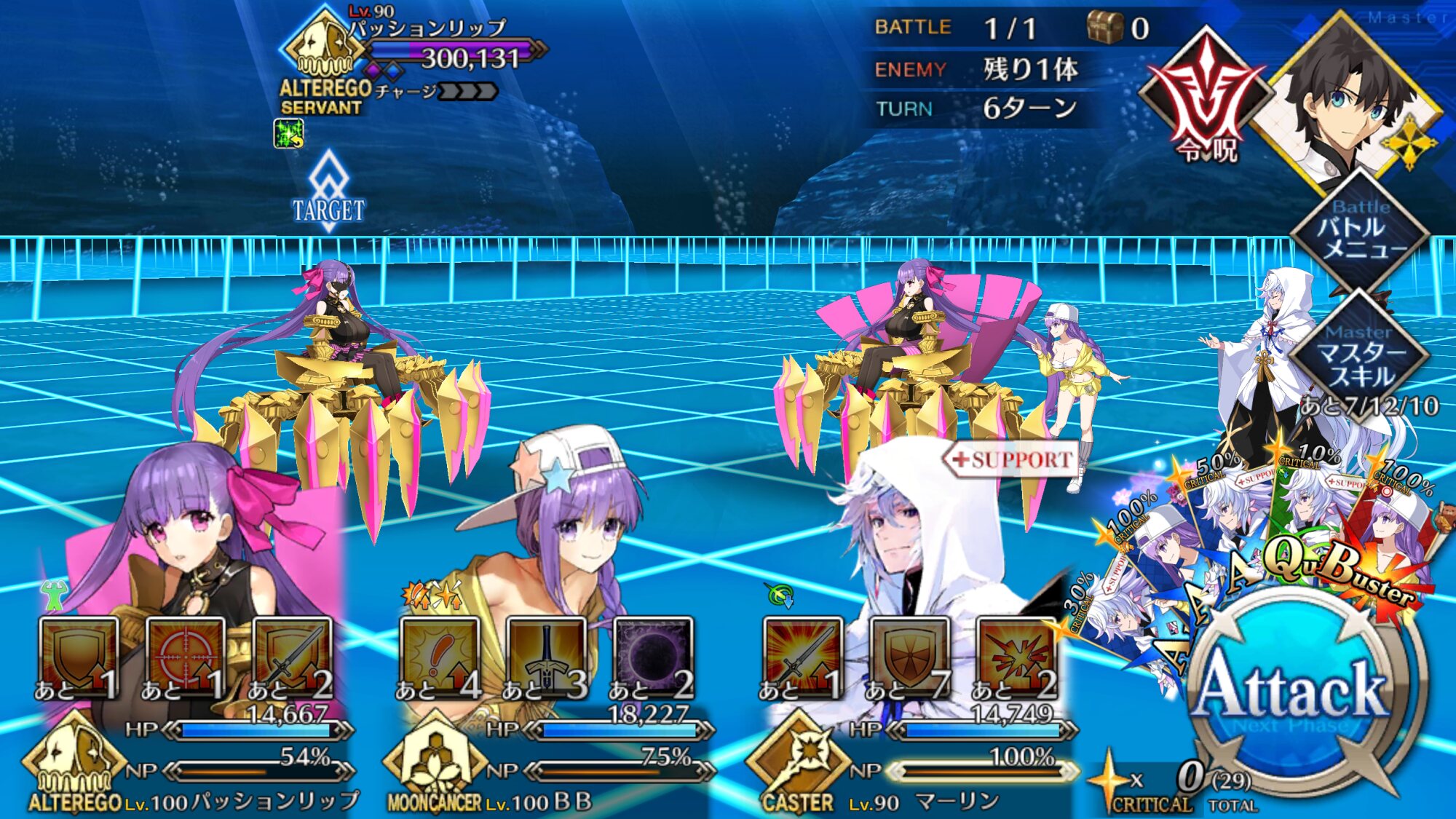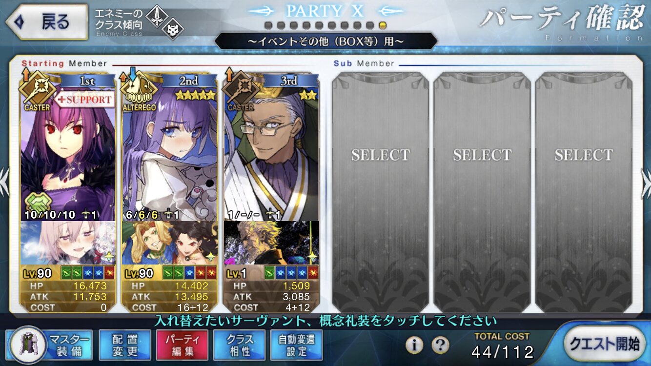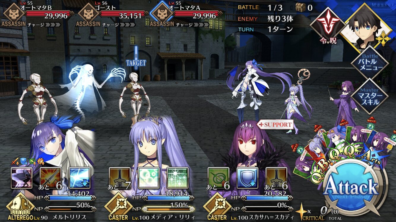 そこの星4キャスターは実はかなり強力なサーヴァントなんですよ。NP20配布とカード性能アップを持っており、元から非凡なメルトの攻撃性能と宝具回転率を高めます