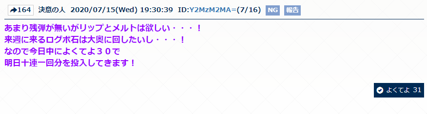 よくてよ無しのガチャ報告は以下のスレッドへ