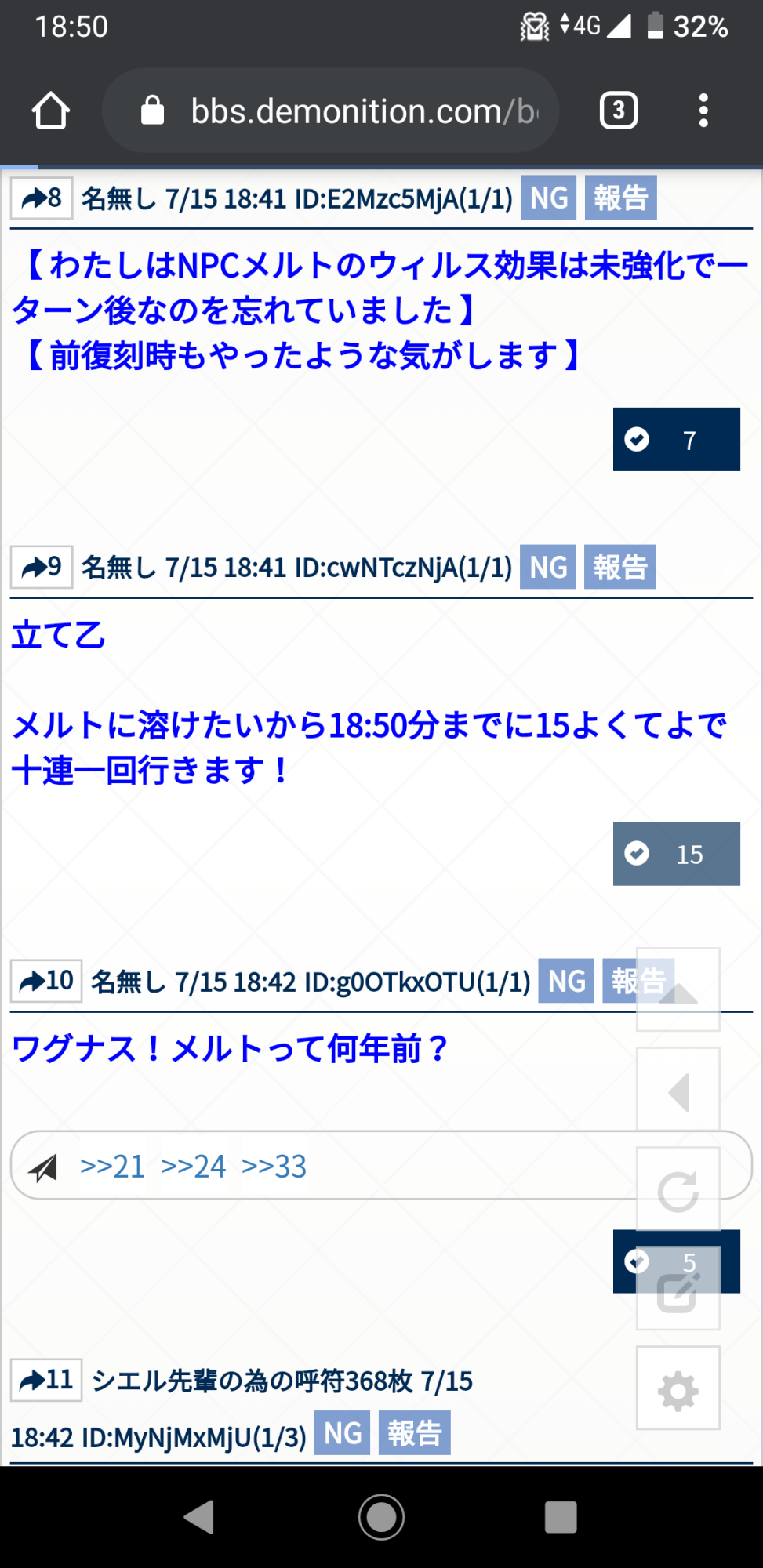 メルトに溶けたいから18:50分までに15よくてよで十連一回行きます!建て乙