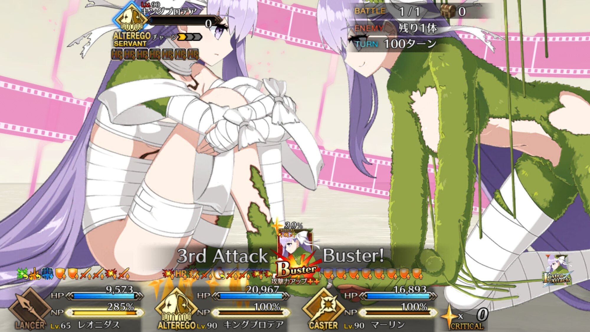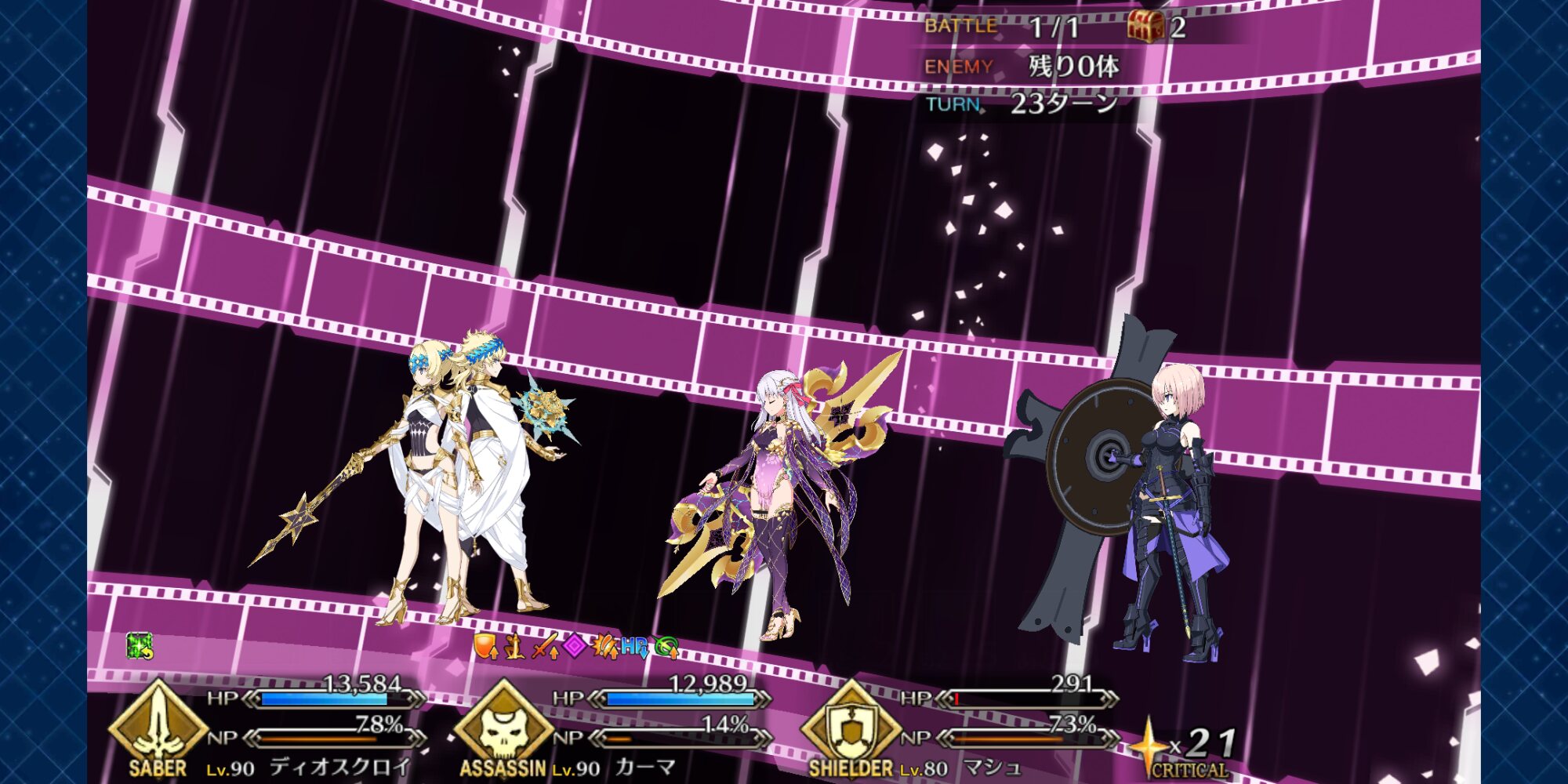 宝具回転率悪くないからパーティや礼装の構成次第では三ターン内に二発目狙えるのが本気でヤバいんだよな。3000カットとか付与されたら通常攻撃通る訳無いだろっていう。>>946
