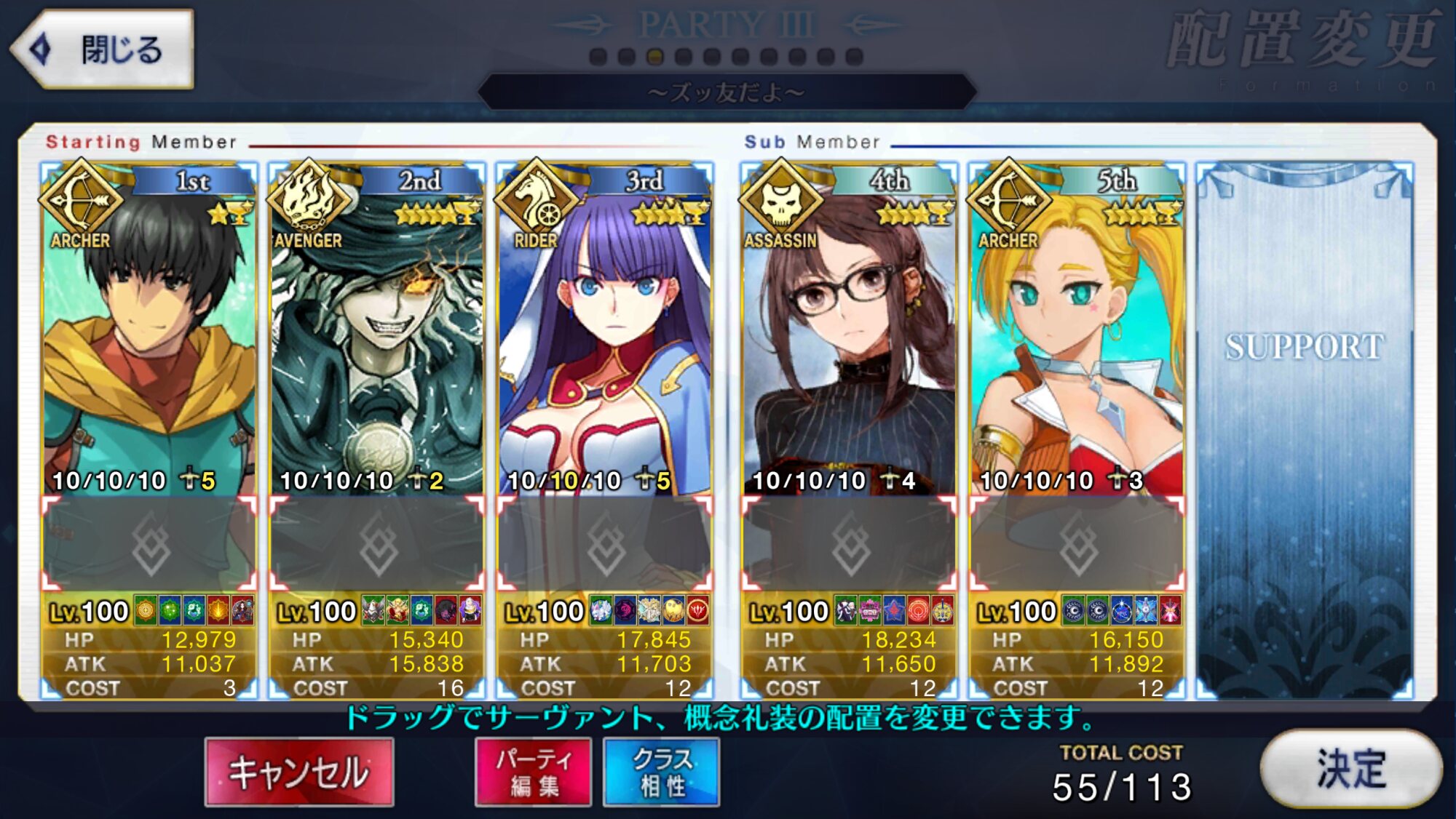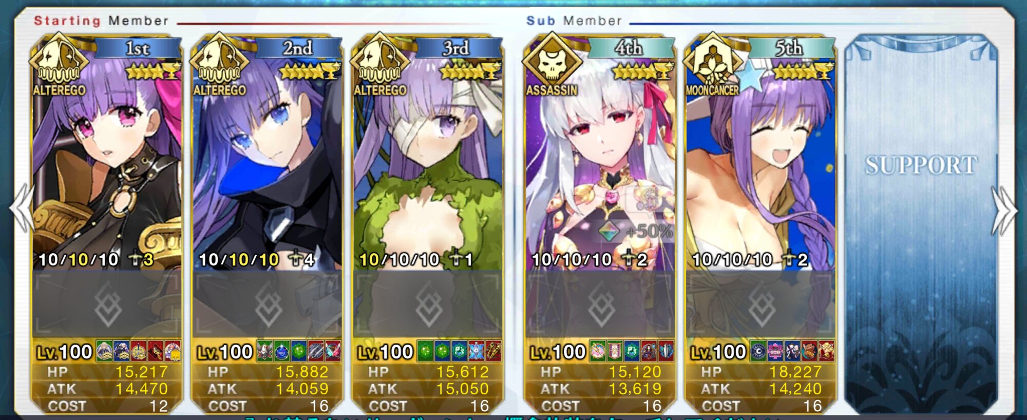 人によっては宝具が重なりにくいキャスニキは単騎が強いとか宝具が強いとか分かりやすい強さでは無いのだけど、体感として"チームの中で生き残る"技に長けてると思うんだ。なのでスタメンから最後まで立ち続けることができる。大ダメージを与えたり仲間にバフを配るのは他の鯖の役目だから、その分を繋ぐ。生き残る。それができるのがキャスニキだと彼を使ってて思うね、キャスニキをよろしく!ダイレクトマーケティングタイム