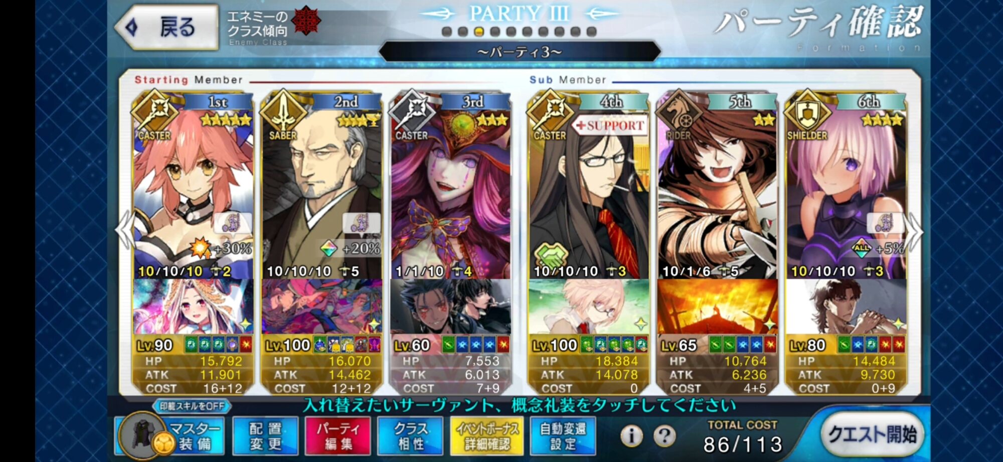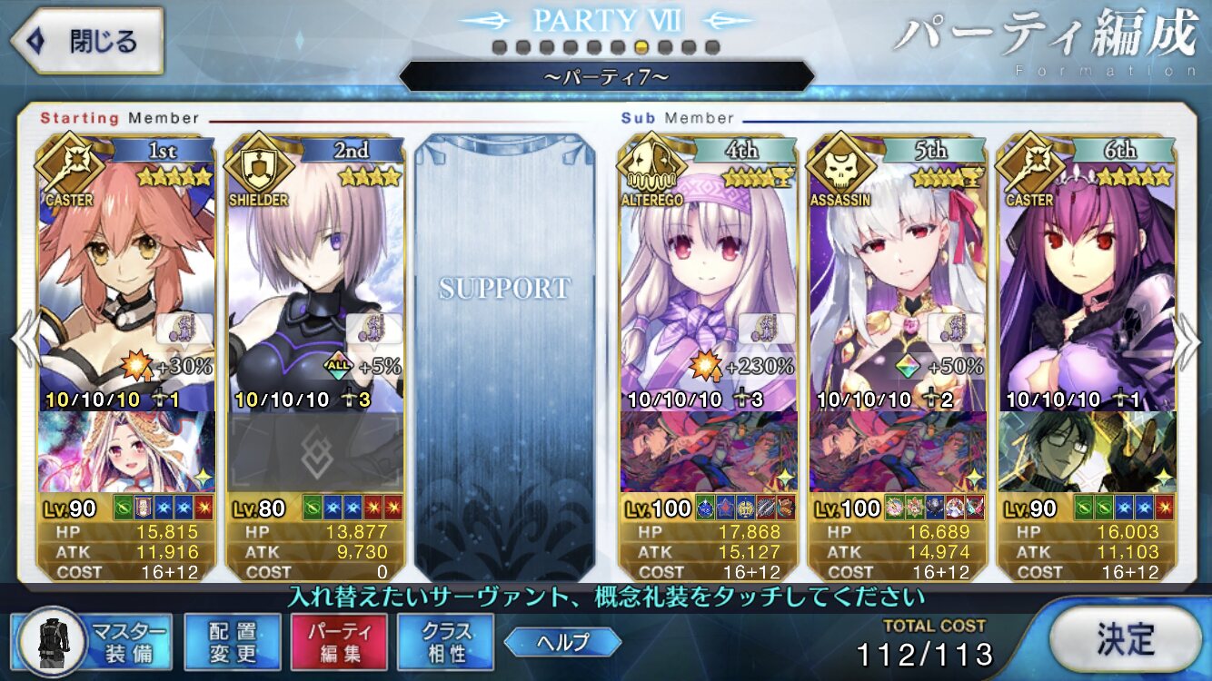 令呪とタスキルだけノーとか無しと書いてるのに石だけなんも書いてないのでややこしかったかもしれない。訂正。ちなみにパーティーはコレ。地味に同名鯖も縛ってた。>>894