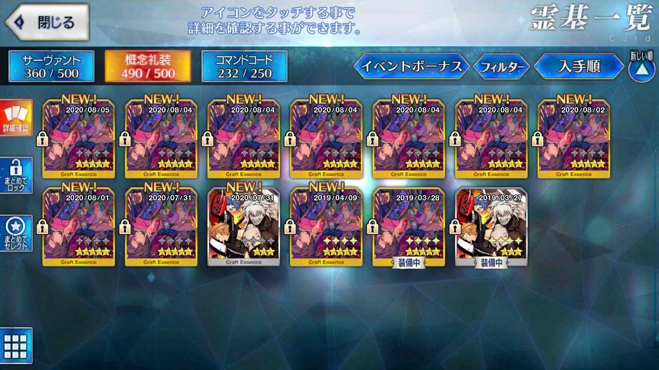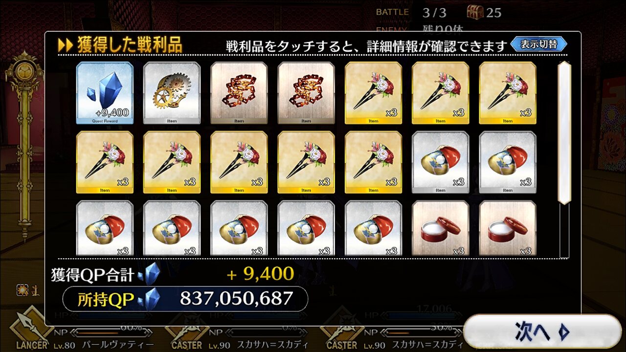 種火B(お前も物好きだな、AP半分期間にシフト入れるとか)