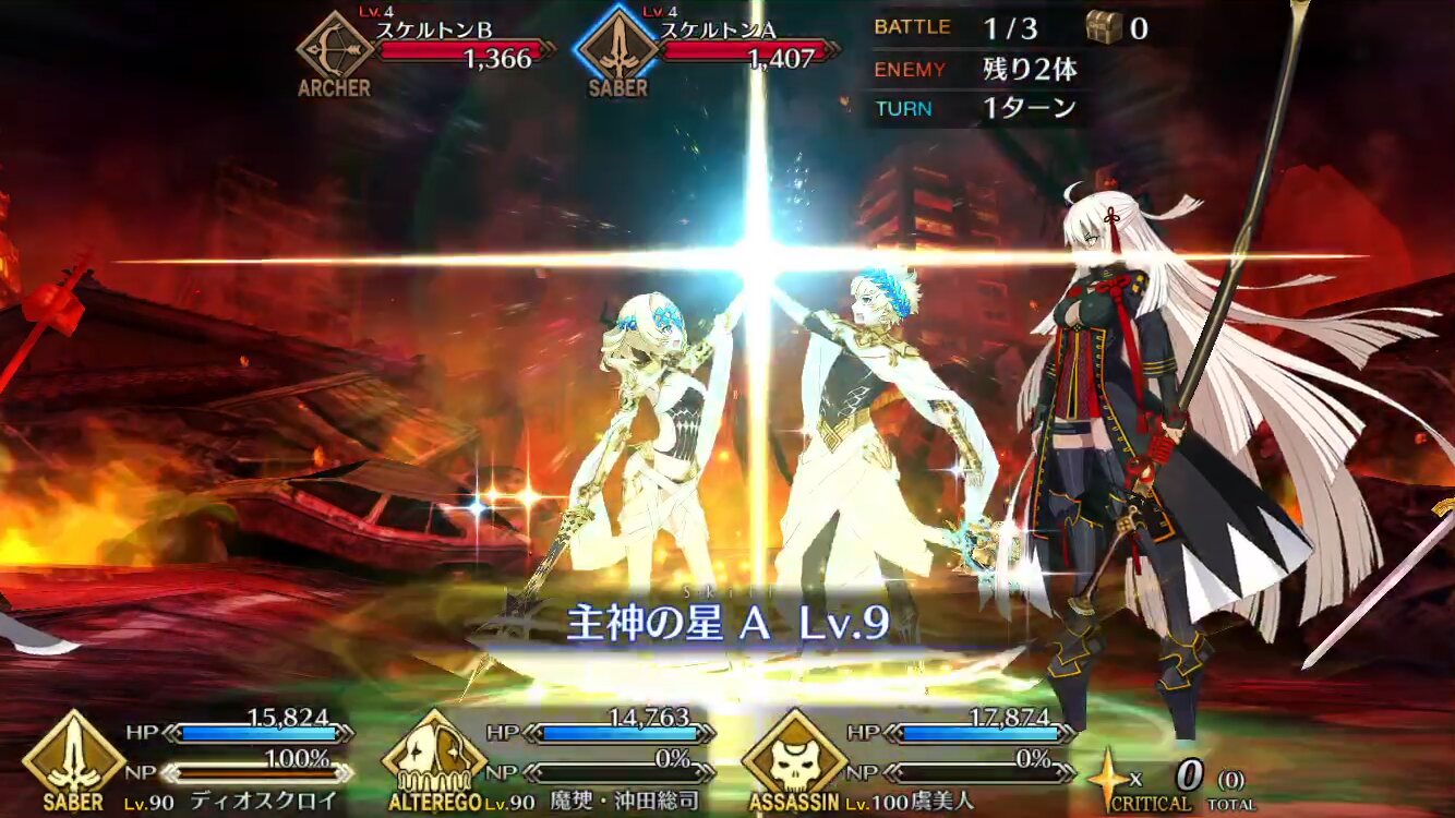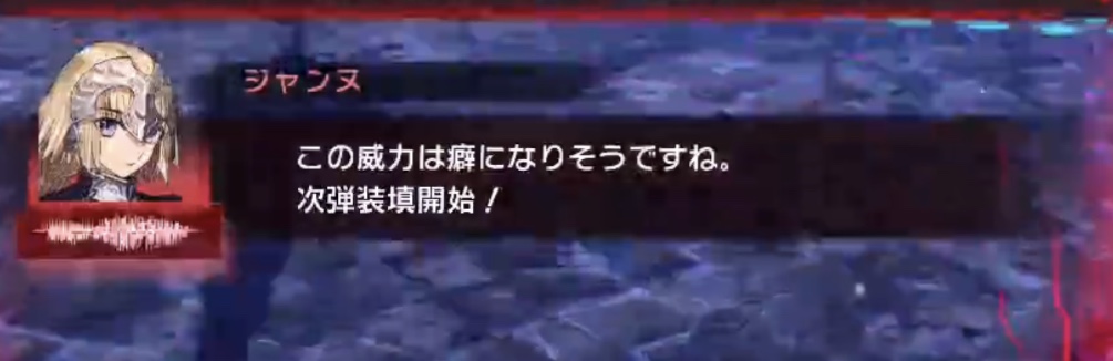 敵のチャージ下げながら宝具威力上げ×2、味方回復しながらアーツ高バフ×2、これがすごく頼もしい。アタッカージーク君で全員宝具を回転させまくってスキルバンバン回してガンガン行けるのすごく気持ちよかった。クセになりそう建て乙