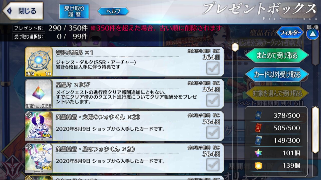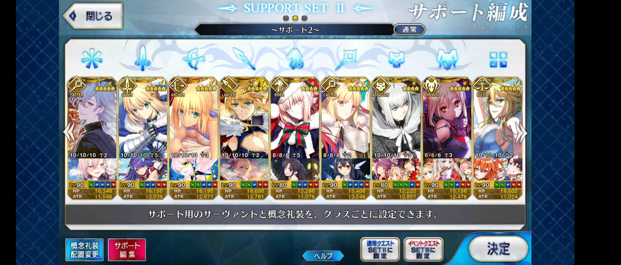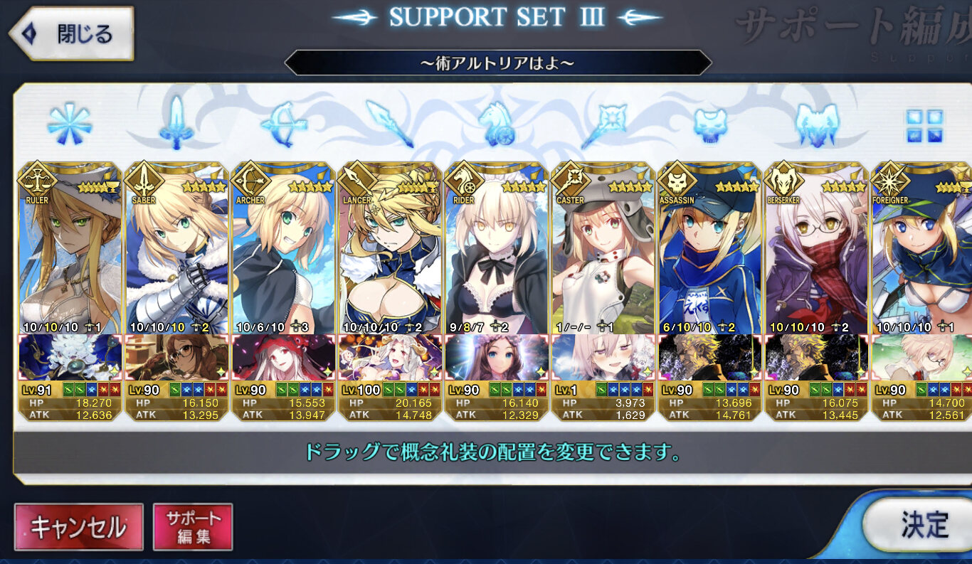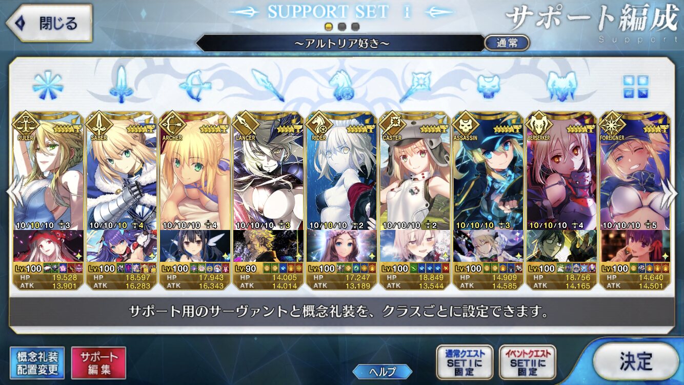 姫君供給して精神安定したのかなアルトリアだけでサポ全部埋まったっけ?