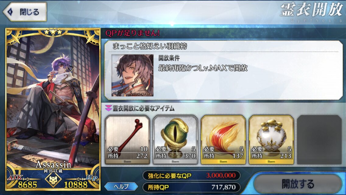 彼女の最終再臨に必要な素材が煌星のカケラ×5個が必要だからお気をつけて……>>36