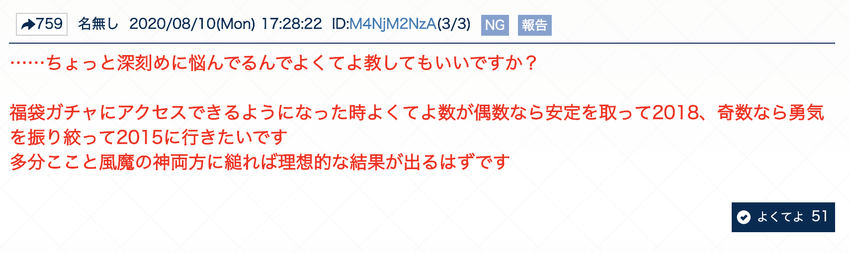 よくてよ無しのガチャ報告は以下のスレッドへ