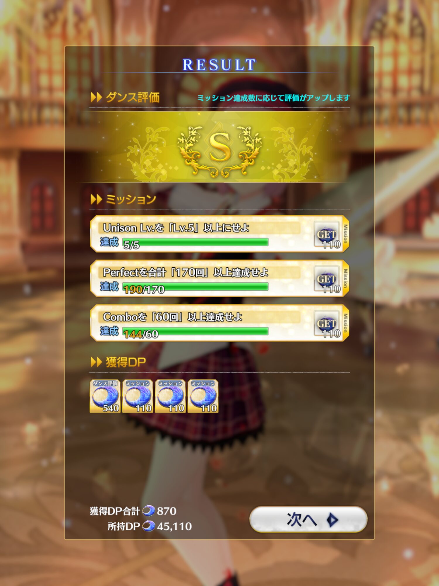 パーソナルトレーニングssss取れたけど、マスタースキルをレベル3まで温存してノーツが少なそうなところで一回使用したら後は使わずperfect稼いで曲の終わりに再使用、でギリギリperfectもコンボも足りたわ