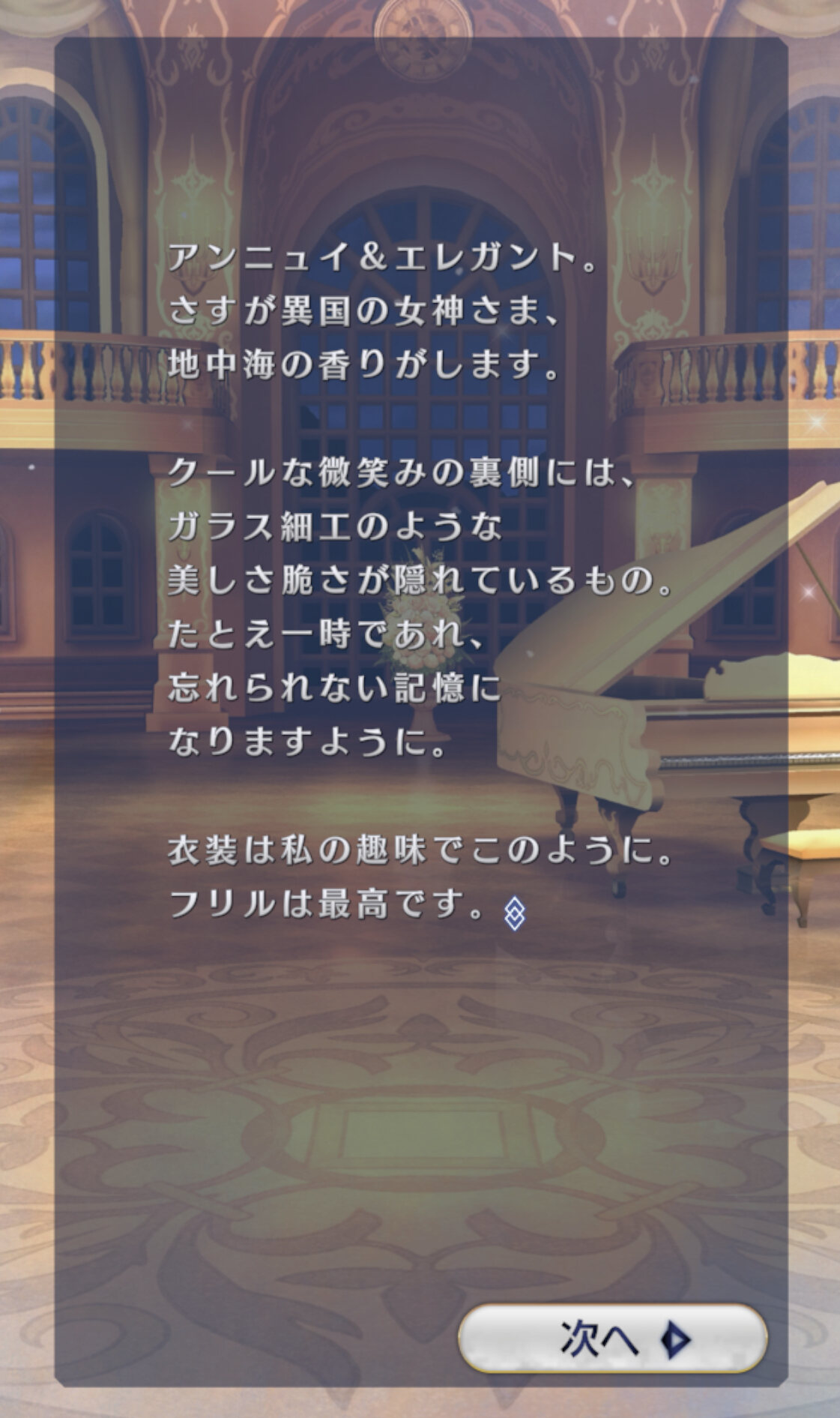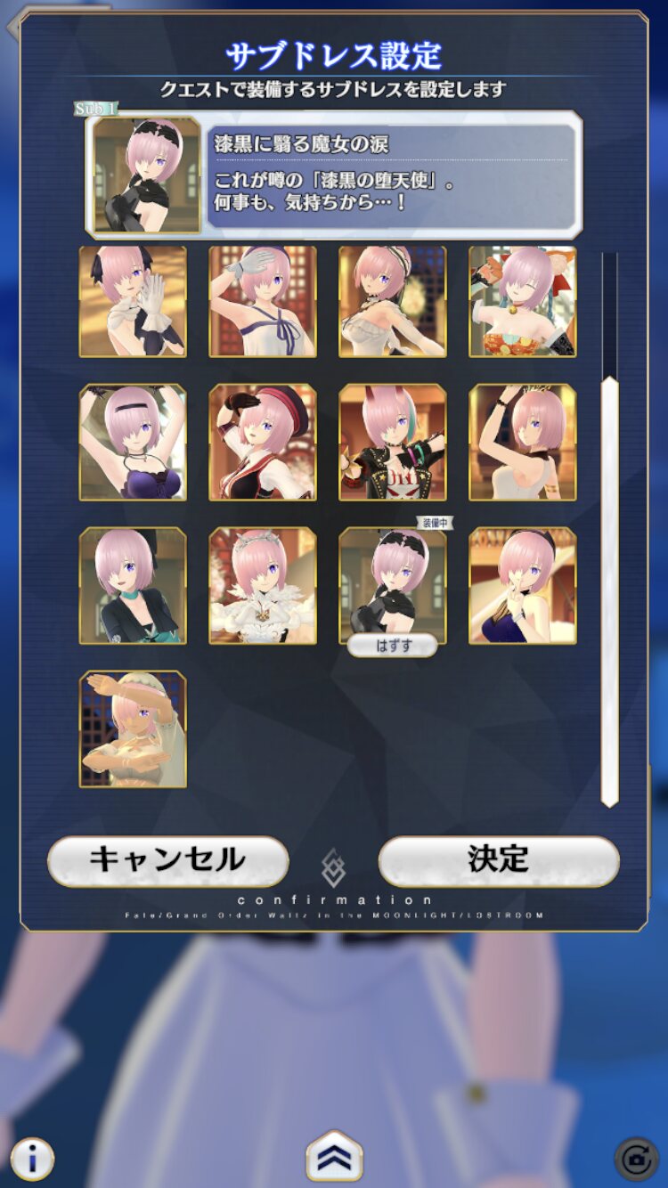 最初のドレス、コレ選んで遊んでると何度かなるなる収録されてる曲がFGO1部に登場するサーヴァントのものしかない事に今気づいた