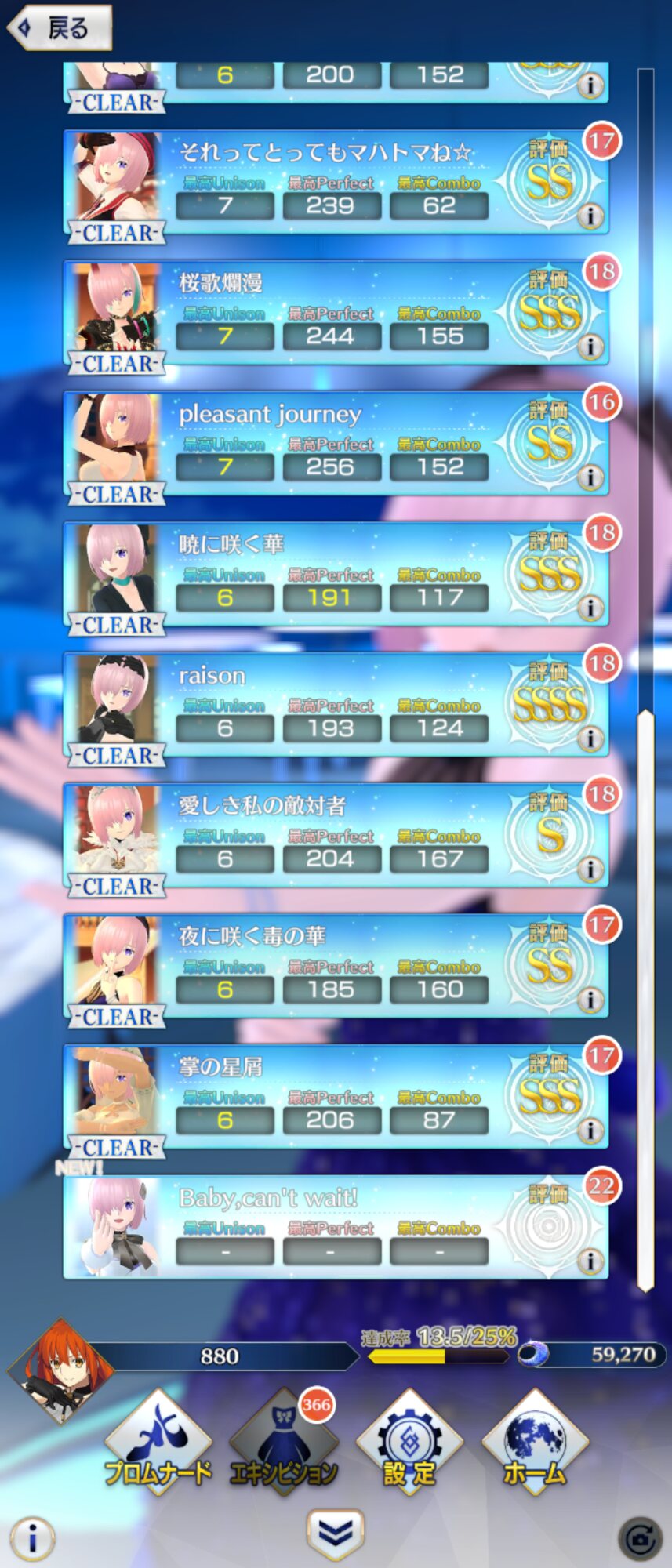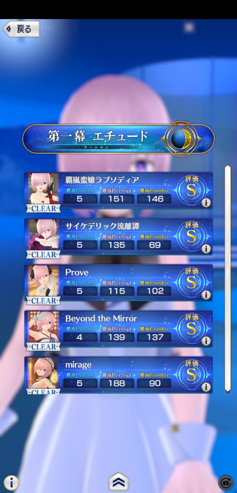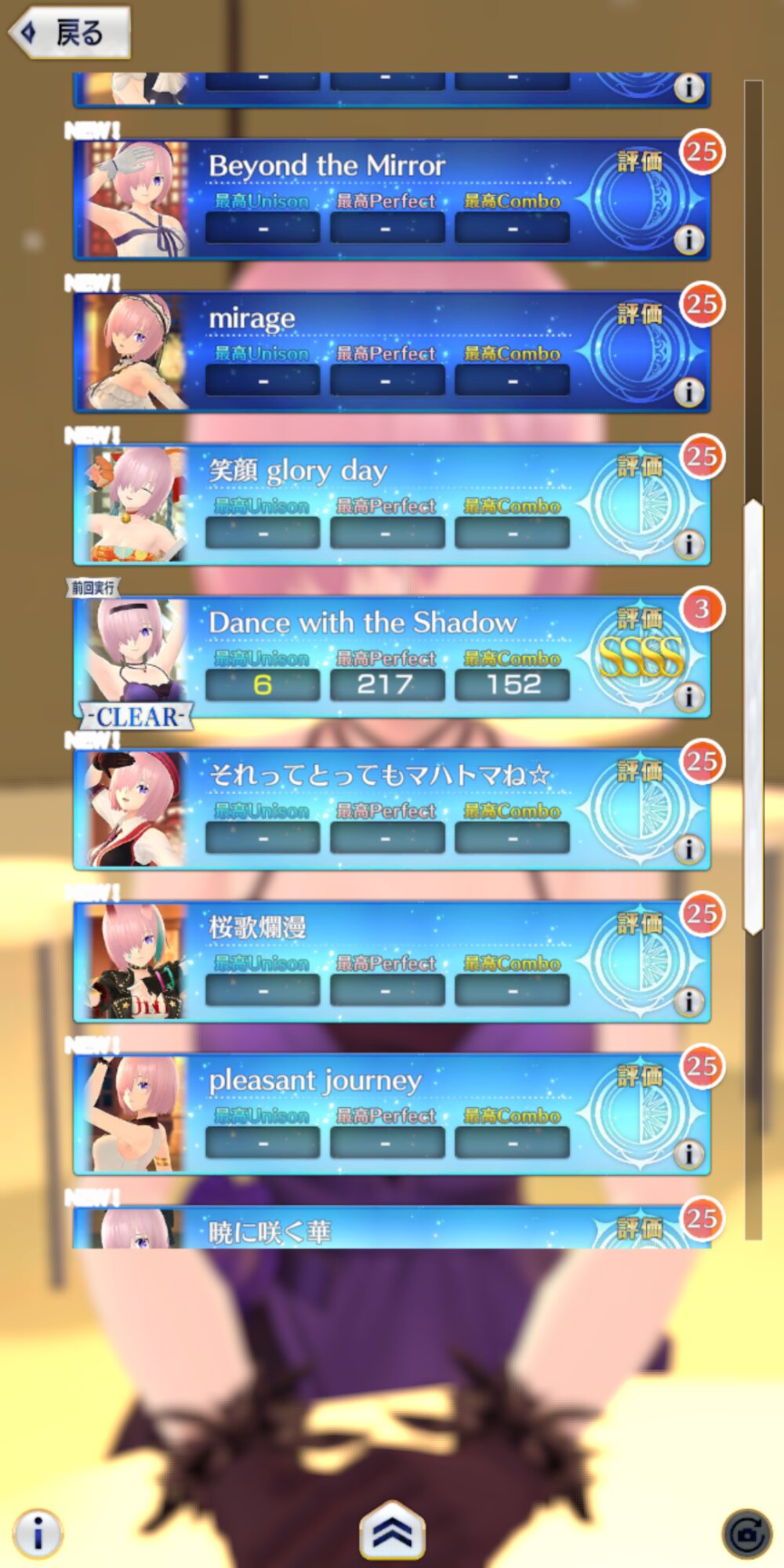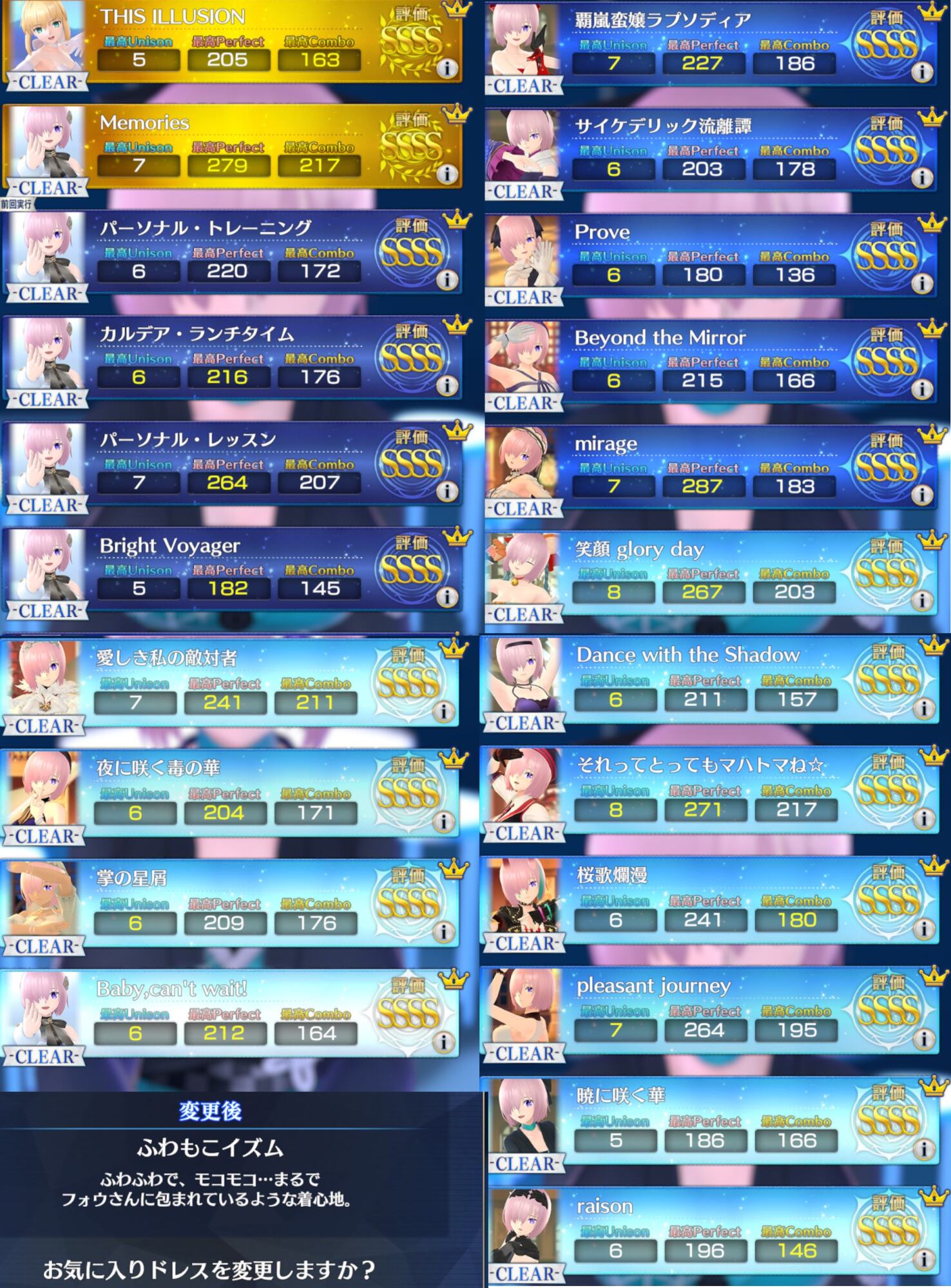 マシュの踊りを眺めるだけとかできんのだろうかフルコンボの際のコンボ数とか分かるようにして欲しいなー