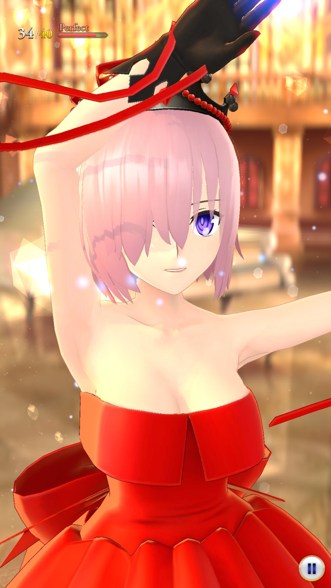 マシュが踊ってるの可愛いし正装ぐだーず素敵で良いけど音ゲー部分、白い背景に白ドレスで白ノーツは中々きついな
