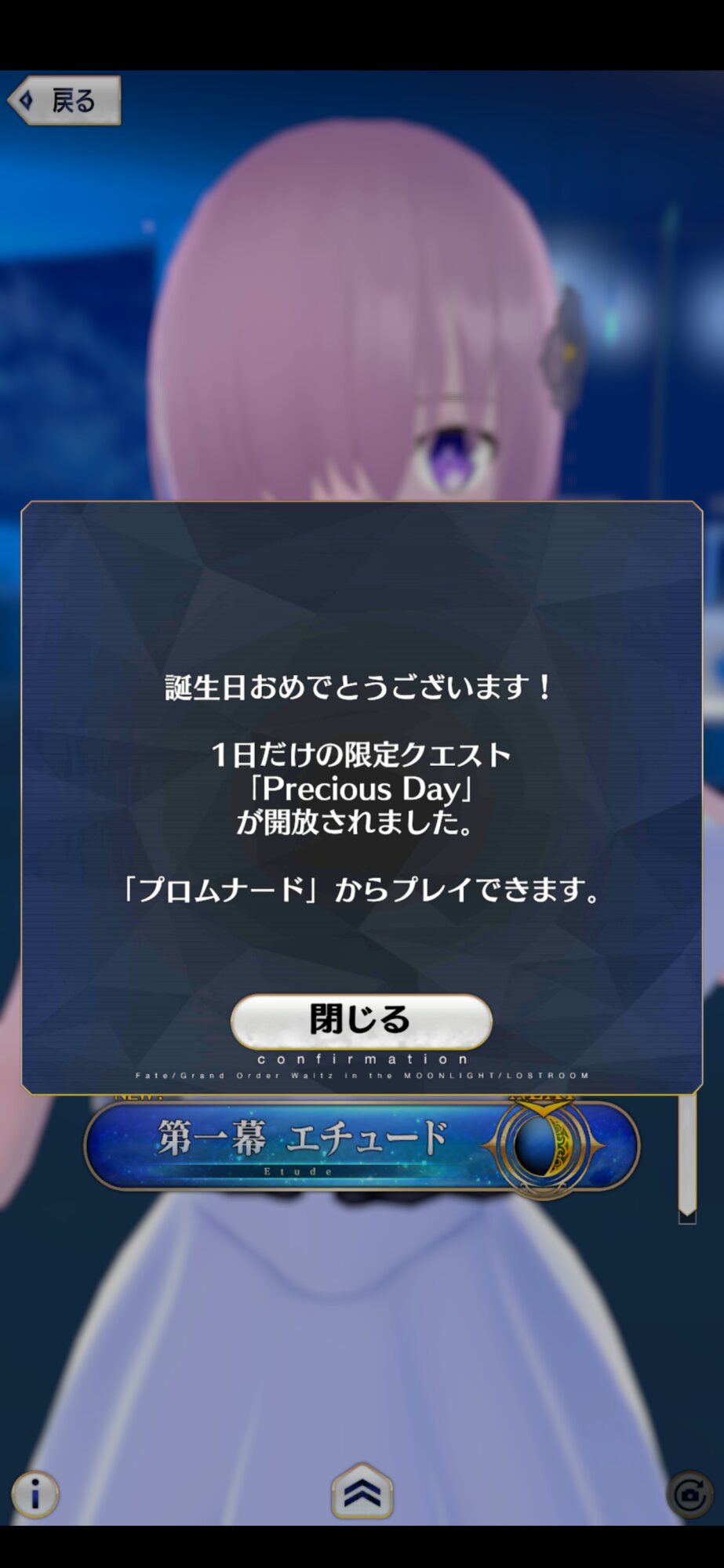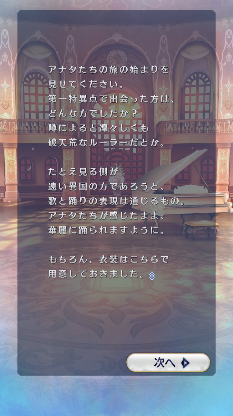 今宵は~だか今夜は~とか言い出したからエイプリルフール的1日限りのアプリかと思ったが誕生日設定あるし後日ストーリー追加とか言ってるし結構大きめのゲームだこれスキルとか即ぶっぱでいいのかねこれ