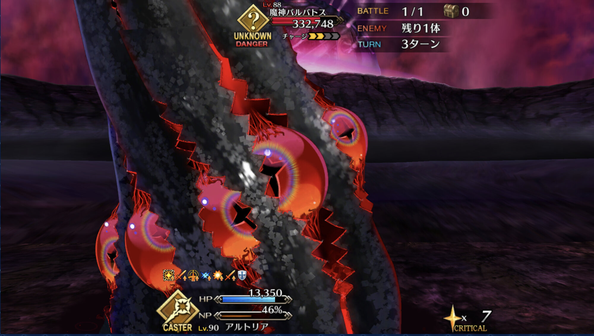 最大の特徴は、3ターンだけ防御を等倍にする効果を持つ宝具「混沌一陣」。扱い辛い、宝具が回らないと言われるが、概念礼装「ペインティング・サマー」を付ければ割とカバーできる。そもそものアーツ性能がバケモノなので、3ターンは無理でも4、5ターン以内には宝具が撃てるぞ
