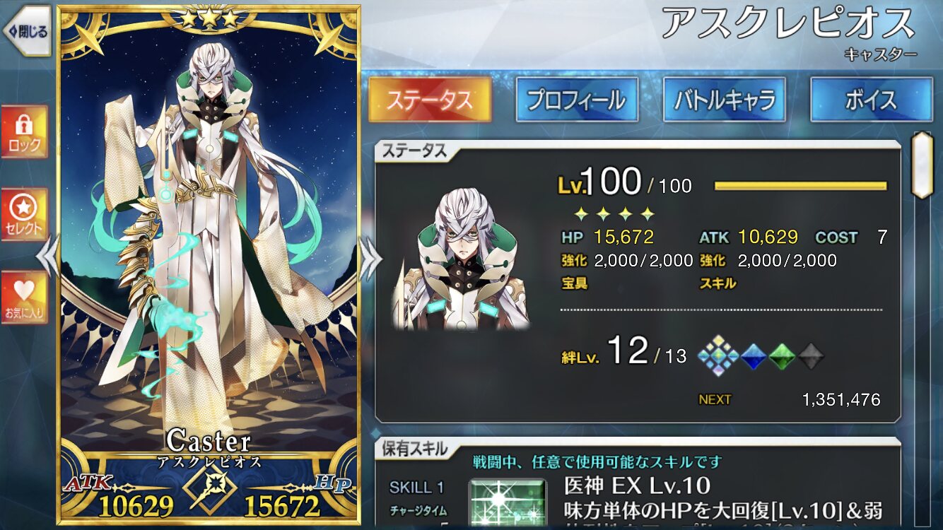 これにHP寄りステータスの礼装付けると更に上がるのだ!アスクレピオスくんはすごいのだ!