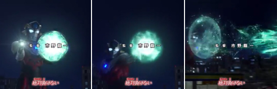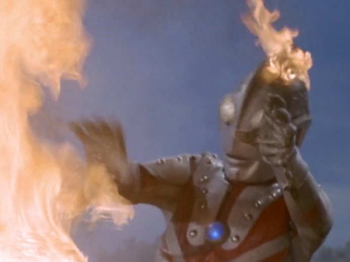 それをカラータイマー青で耐えるタロウよ