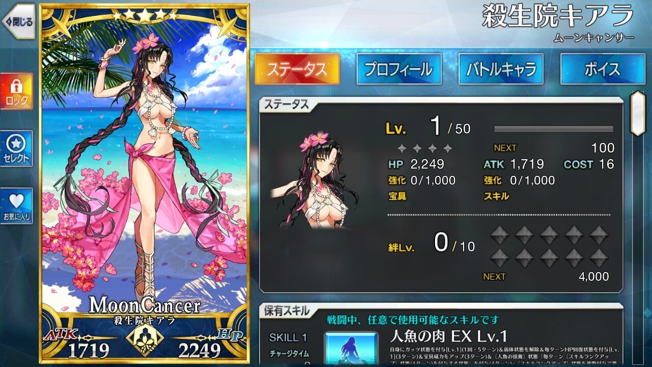 水着キアラのNPチャージだけでもLv10にしたいんだけど2,30周しないといけない……