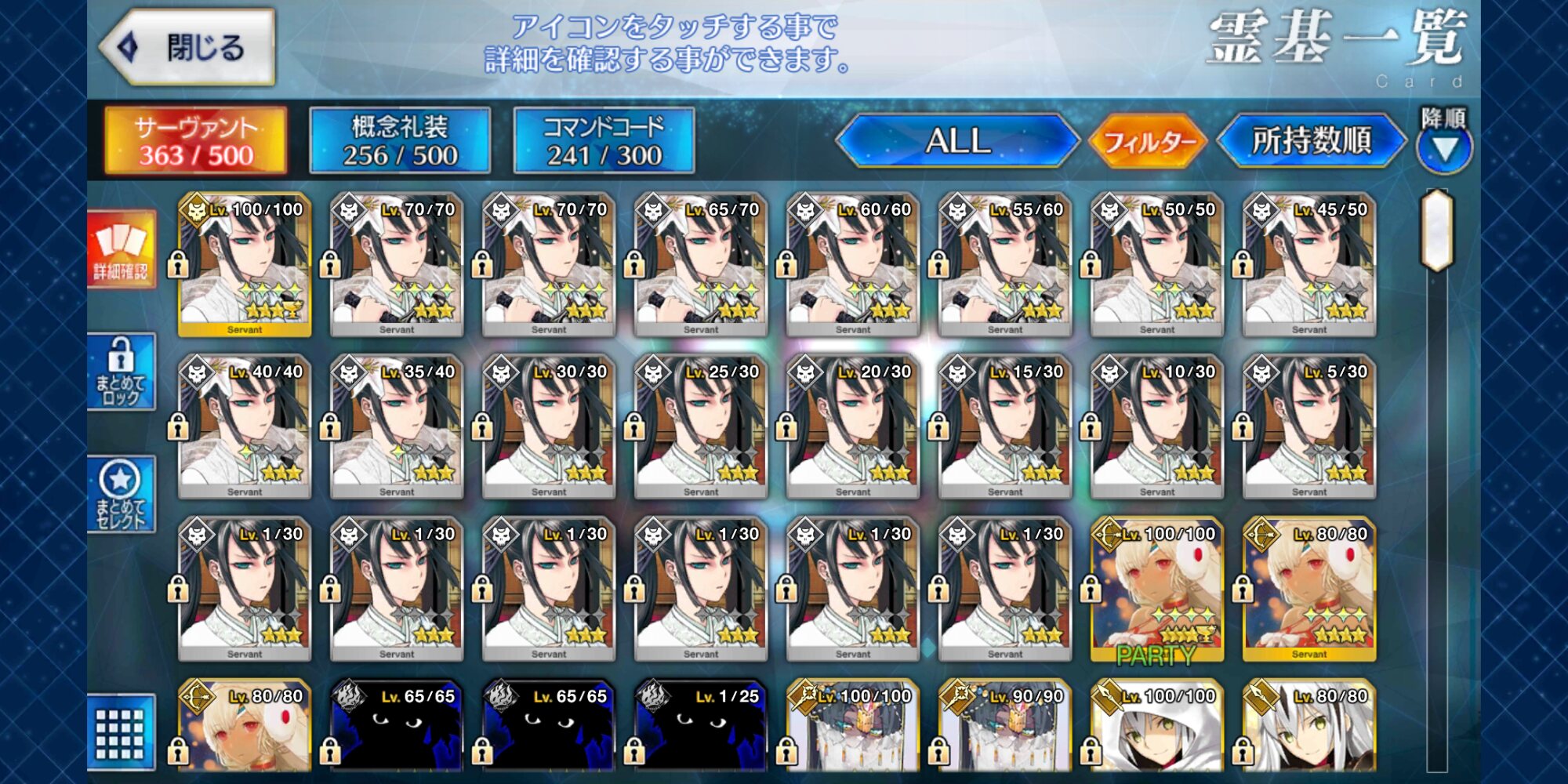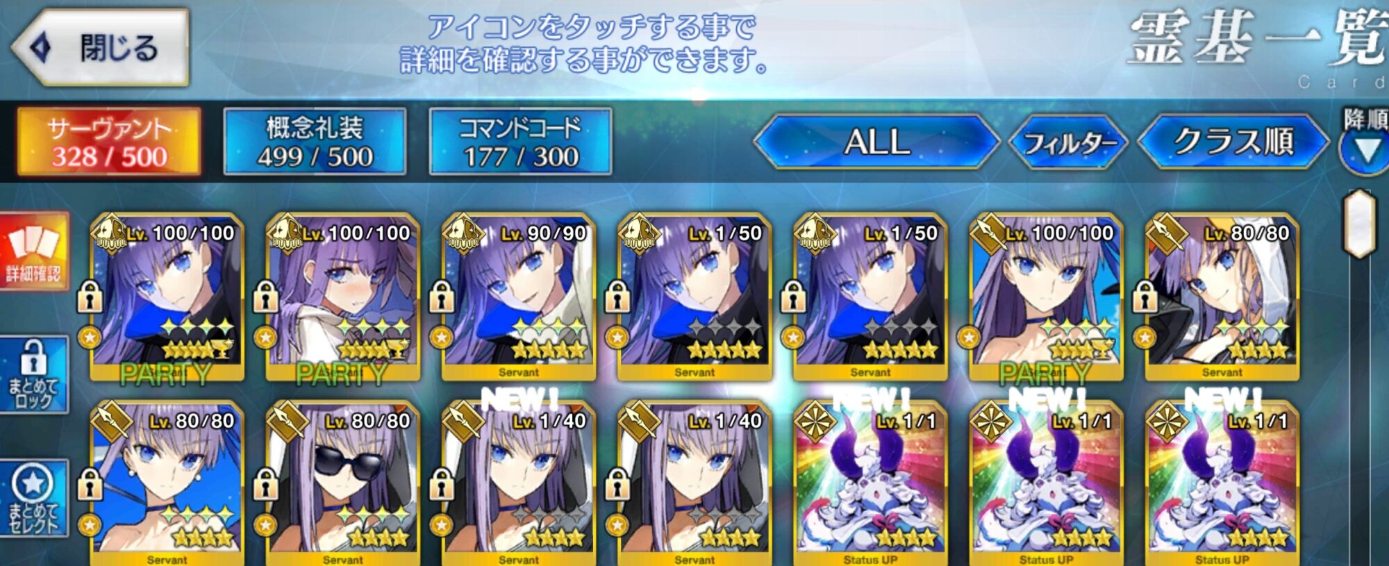 霊基一覧において、ソートを「クラス順(昇順)」にしたときの並び方を答えよ。