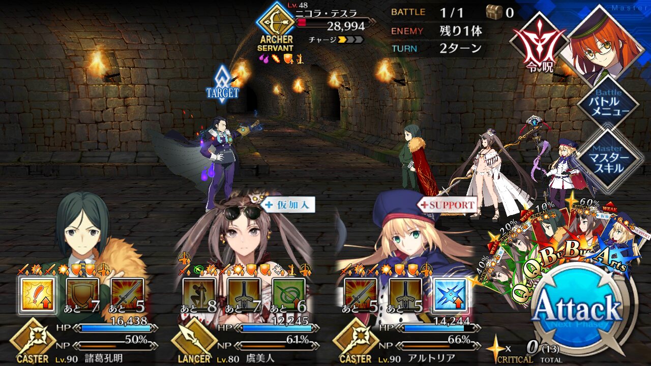 やはりフレッチャーでなければ抜けぬ······キャストリアでNP50出来るようになったから笑汁をアーツ宝具につけて撃ってるけどほんと溜まり半端ないね…わぁお…