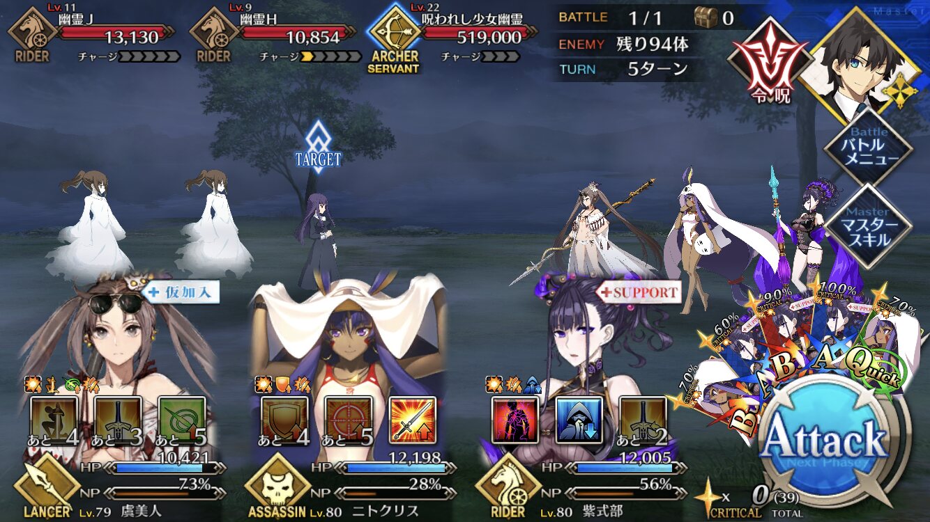 ただ本人消えちゃったからよくわからないけど……もしかしたら徐福(仮)もガチャ入りでPU2は4騎かもね