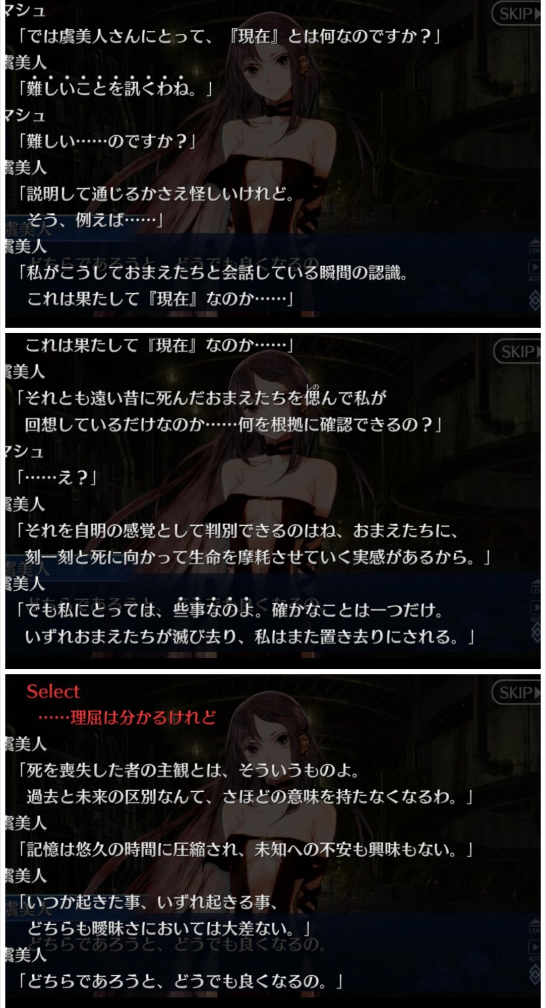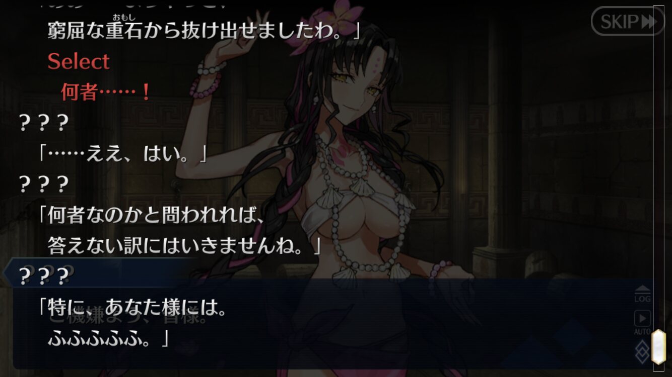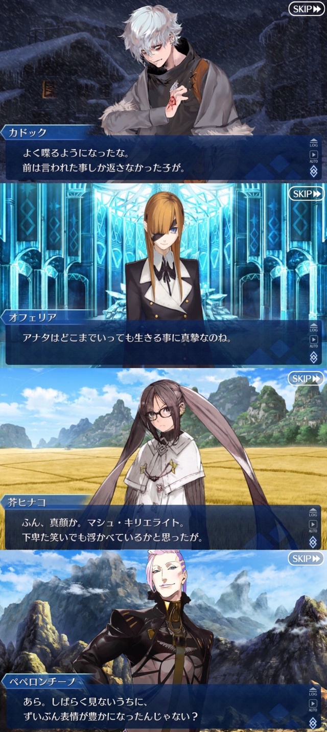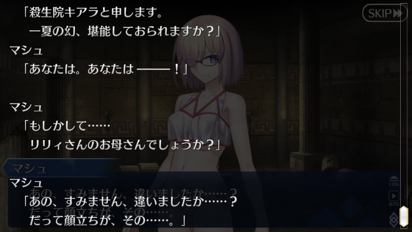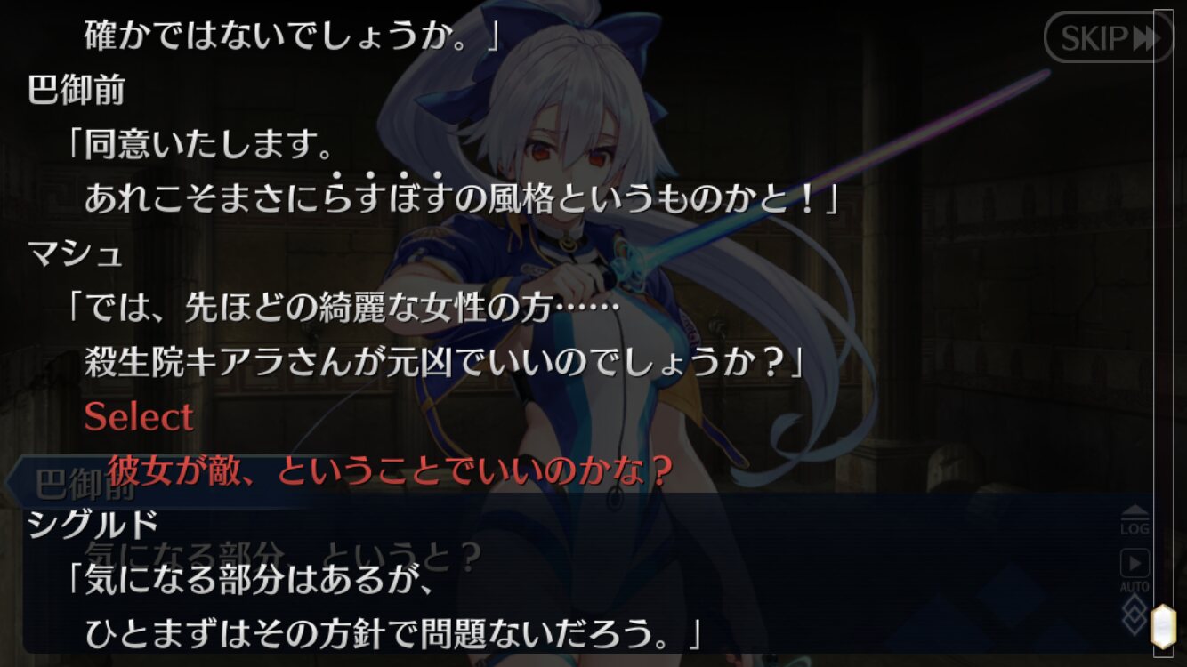 進行度で変わる視点、シグルドサイドだと性別が変わるというか今更だけど偽物の時は選択肢がひとつしかないのって、「視点主は藤丸立香(主人公)じゃない」→「プレイヤーが藤丸立香(主人公)以外の意志を選択することが出来ない」ってことだったりするのかな