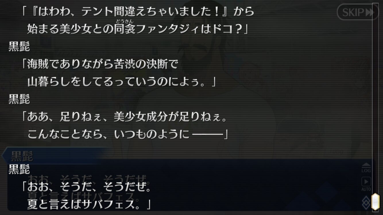 水着イベント準レギュラー黒髭の登場場面がそこだったら笑う他ねえわwなんていうか偽ドレイクとのバトルクエストのパーティ編成時のゲストが「?」になってて、それ選んでバトルスタートしたら黒髭だったみたいな感じでw>>80