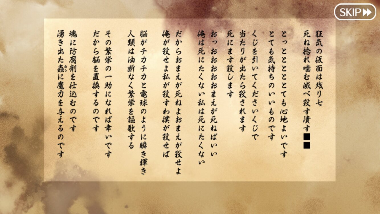 そして殺戮の蒐集のためにくじ引きで村人を一人ずついろんな方法で殺.して行って