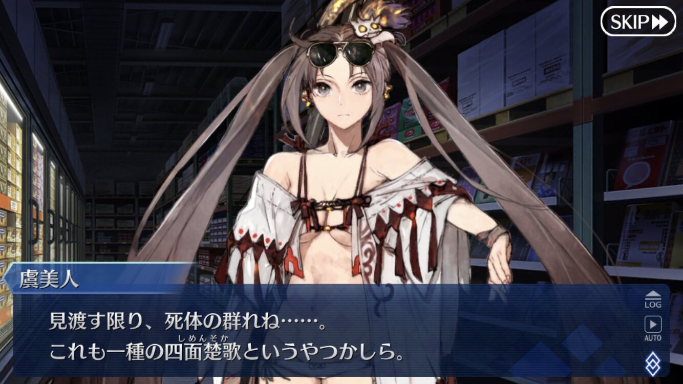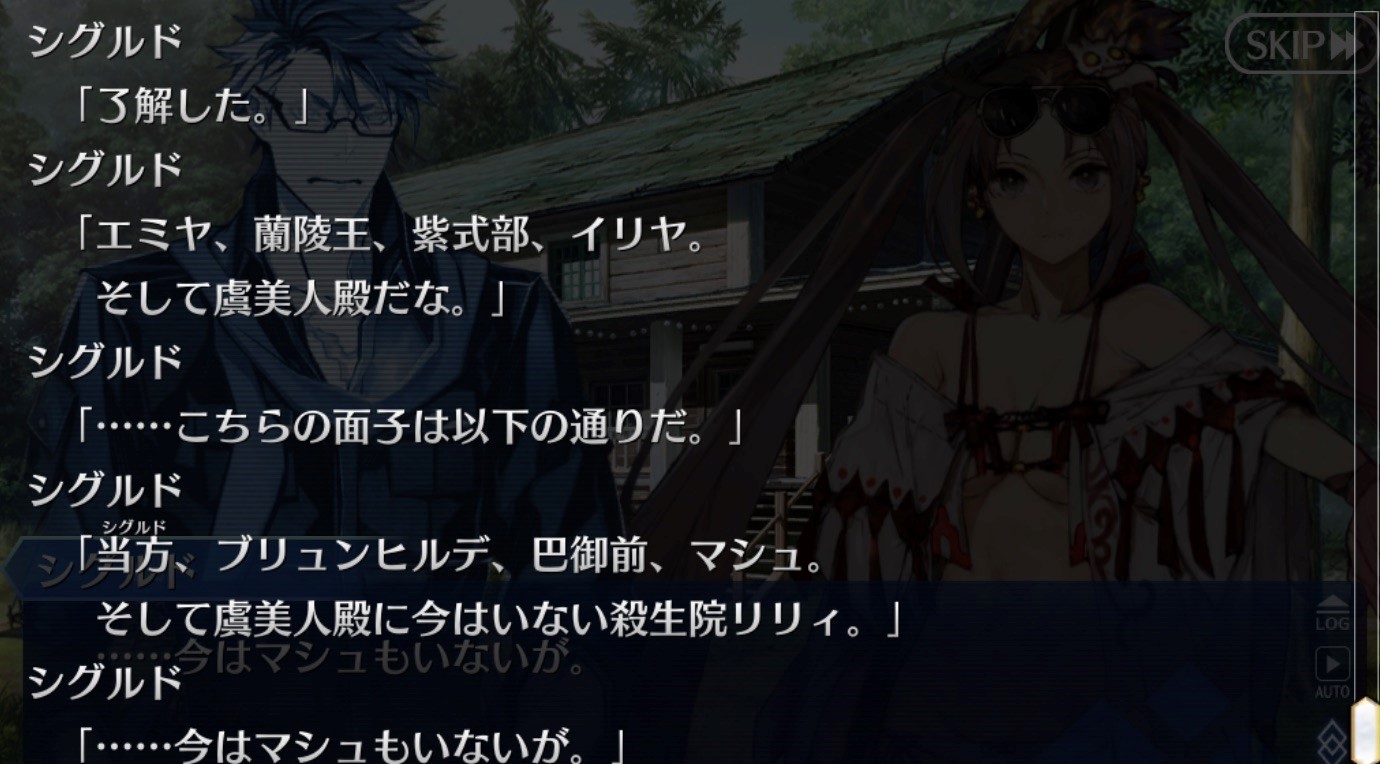 龍殺しのシグルド、戦乙女のブリュンヒルデ、大学生のエミヤ、蜃・キアラ、アビー(可愛い)、VR巴御前、女流作家の紫式部、パイセン、保護者の蘭陵王