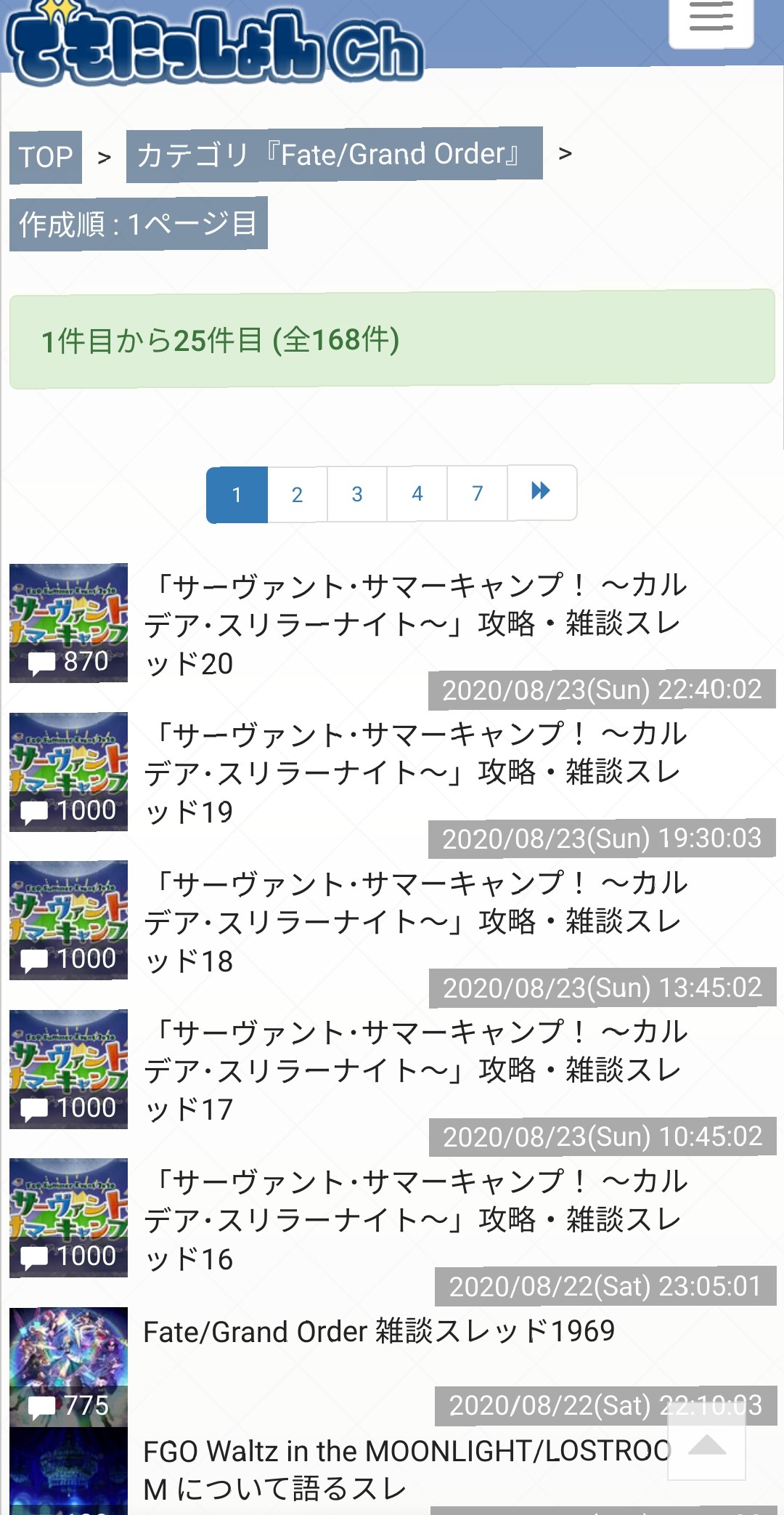 2020年水着イベント「サーヴァント・サマーキャンプ! ~カルデア・スリラーナイト~」の専用スレッドです。