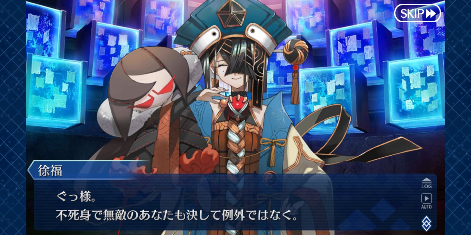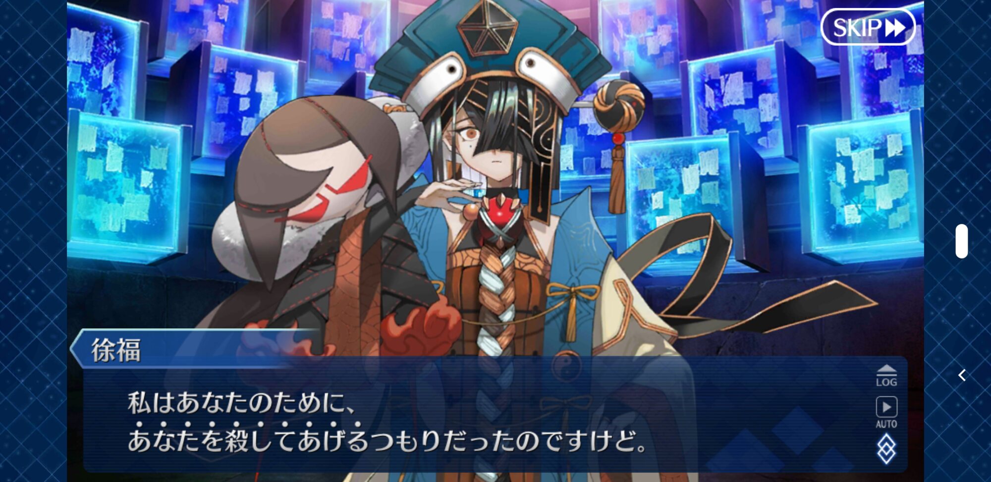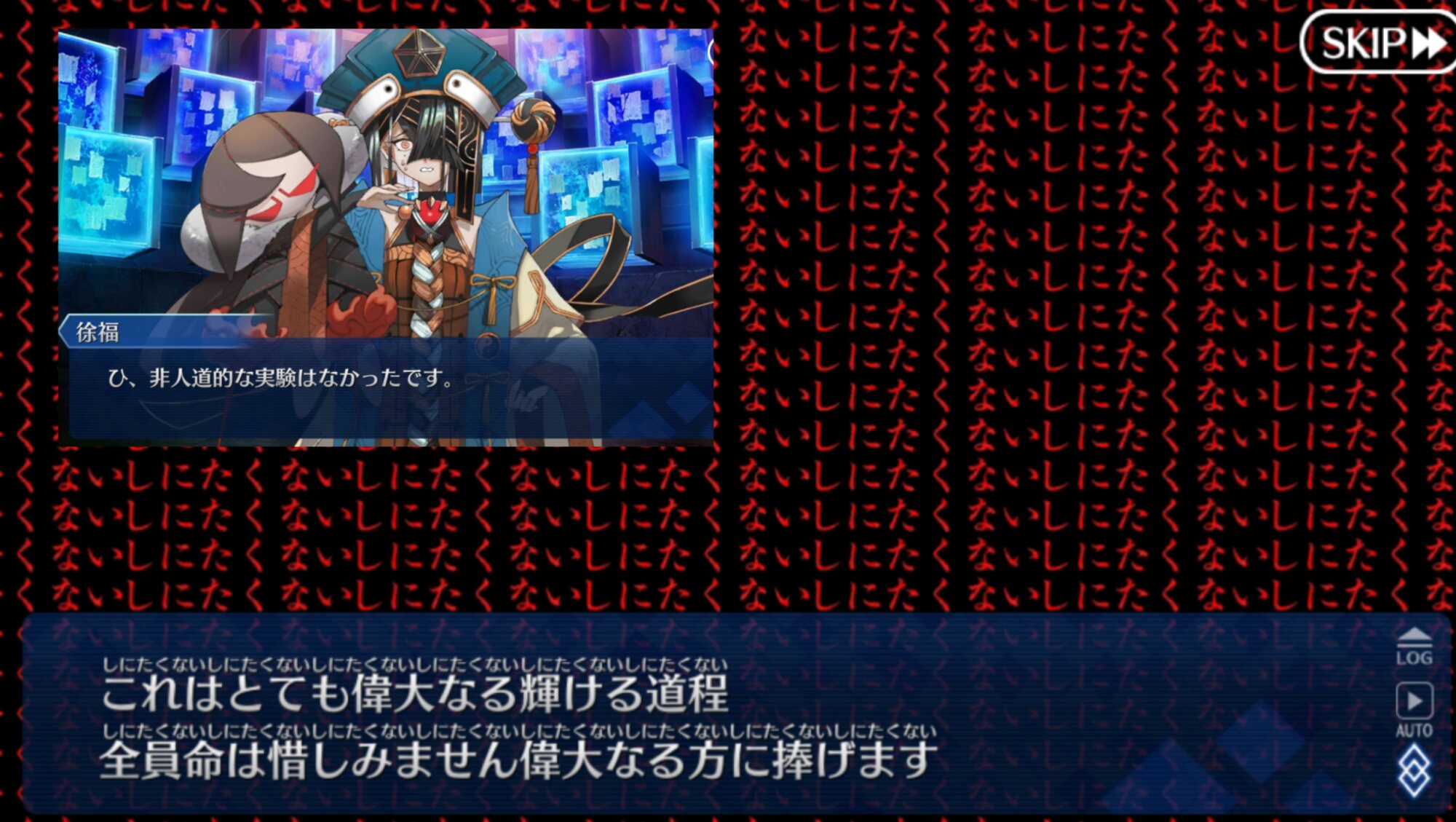 個人的には朕が派遣した徐福ちゃん(正気)とあの特異点の徐福ちゃん(狂気)に戦ってほしい……不毛な戦いをしてほしい……(歪んだ感情)これで例の仮面装着して「私は人間を辞めるぞー!」って言い出したらどうしよう、徐福ちゃん