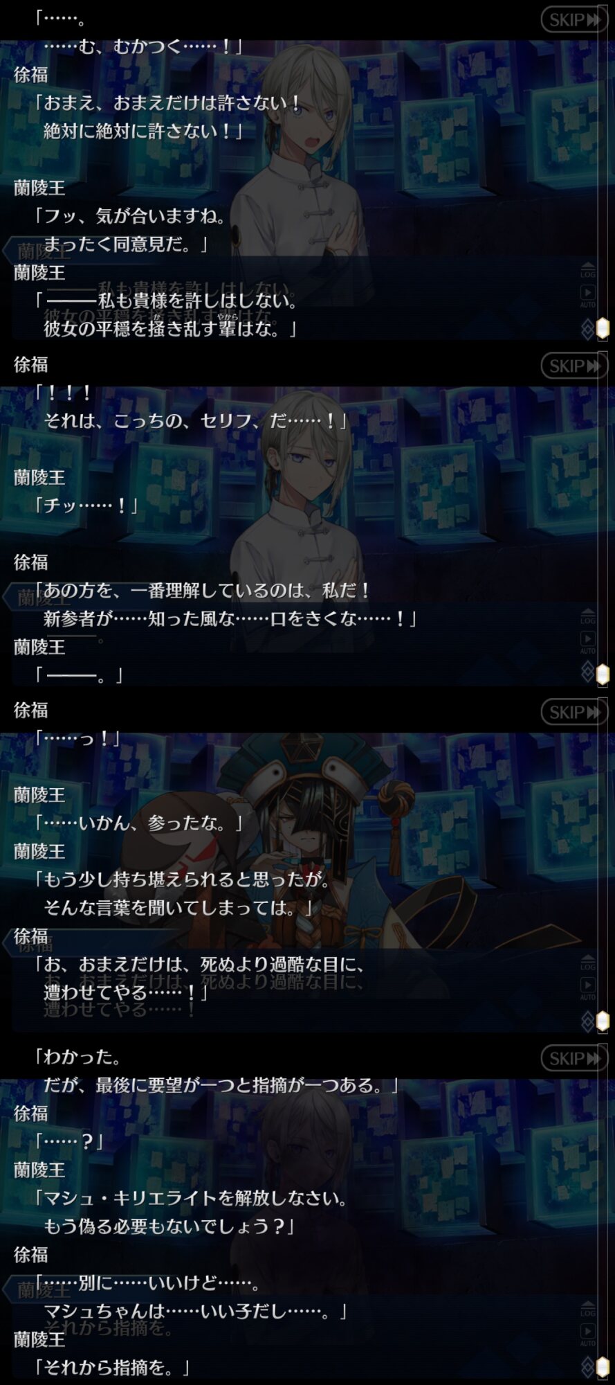 多分護衛と証して常に偽ぐだの周りに居そうだから、「気付いているのか!?」って警戒されそう。徐福「我が肉体となって生きよ!蘭陵王ーー!」