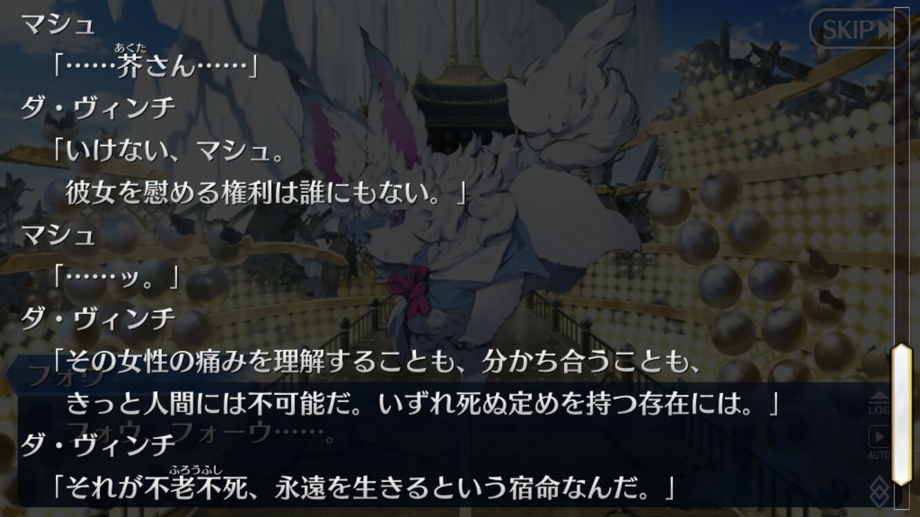 始皇帝から調整を受けて再臨してて、あれホラー意識してたのか……となるやつ仮面が死に続けるのオルガマリーと被ってるような