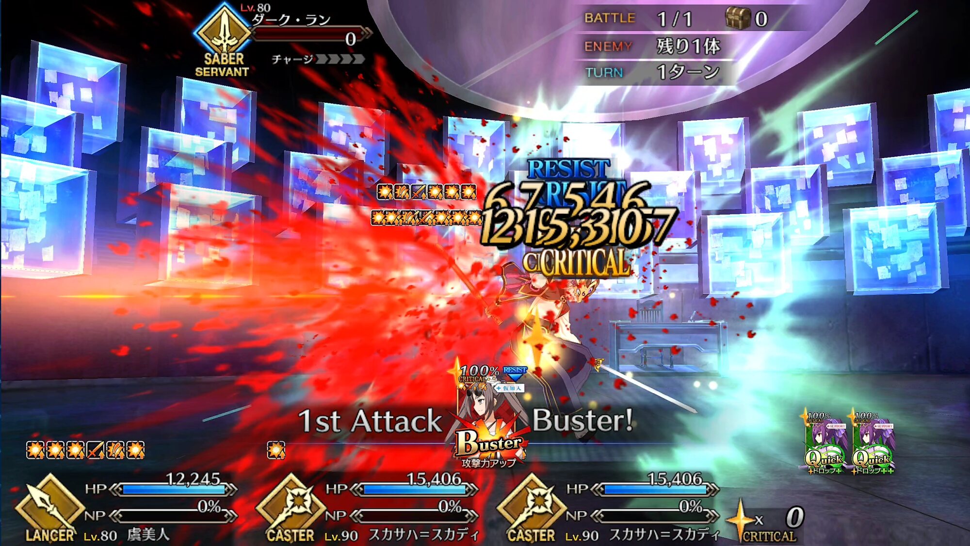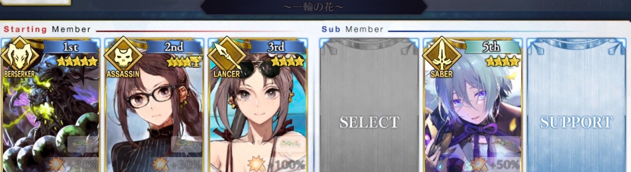 ノッブメインでアサシンを全力で殴る→二人でセイバーを殴る→この辺りでノッブが落ちるので最後のランサーを鈴鹿で倒す