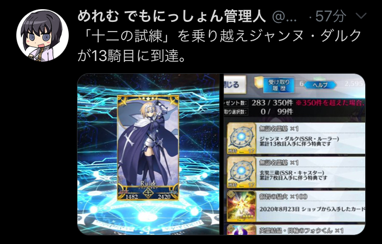 え?巴さんを引けたガチャ結果なら?私が引けなかったら末代まで呪うヽ(`Д´)ノヽ(`Д´)ノ…………ちなみに私は徐福ちゃんのちっぱいちっぱいって興奮してました
