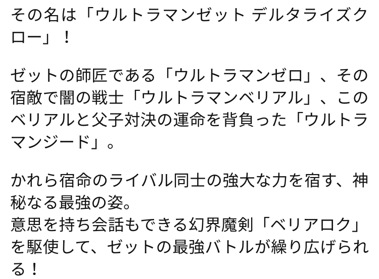 ゼロ「デビルスプリンターの特大の反応があってそれが他の宇宙でも感じ取れるくらいの波動だったんで急いできたんだよ。そしたらベリアルの頭のついた剣はあるわ、ゼットはそれを持って暴走してるわでなんとなく事情を察してな。」