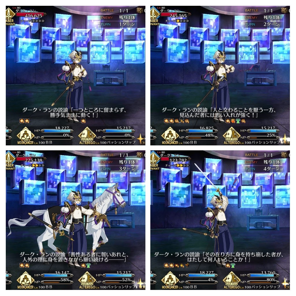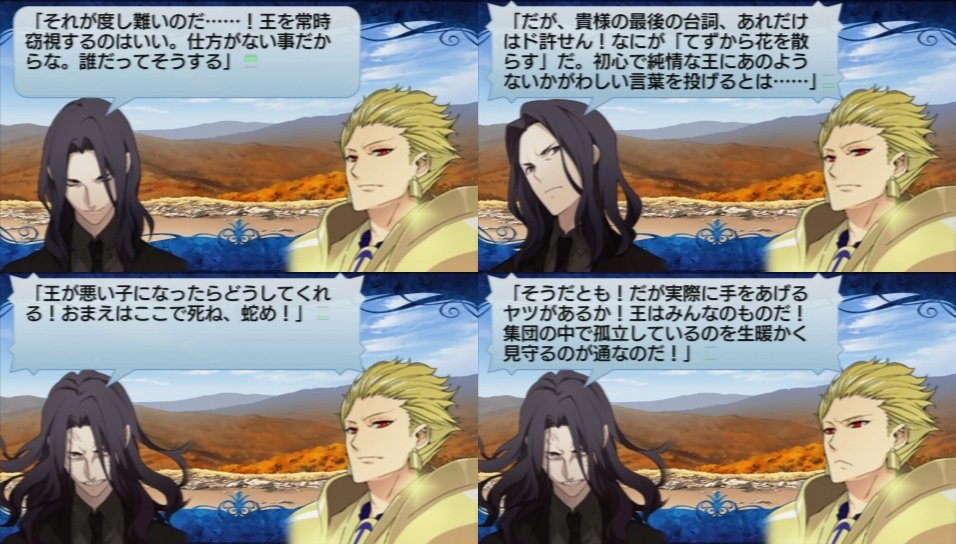 あれってそういう仕様になってたのかなぁ?バトルスピードは倍速のままだったんだけど今回の蘭陵王とぐっ様のやり取りを見て改めて思ったんだが、蘭陵王にもぐっ様にも、互いへのマイルーム特殊会話を追加してほしい。