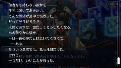 それぐらいマシュとの時間を名残惜しく思ってて、でもやっぱり永遠には続けられないからわざと花火を落としてマシュに最後の花を持たせてあげたんだと思うとね…いやほんとマシュ←徐福ちゃん片想い概念いいわぁ、マシュはあくまでぐだを見ていて徐福ちゃんを見てるわけじゃないのにその視線を受け取る徐福ちゃんはそれを大事に感じてマシュと友達になりたいって思ってたのがね、偽物として築いたというか入り込んだ関係なのに思いは本物っていう臙条巴的概念みあってなんかこう尊み的なエモーションを感じるんすわ>>108