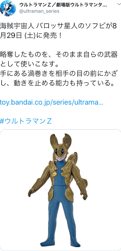 太陽100万個が爆発したエネルギーを持ってるっていうバケモンだが知名度の割にもう長いことステージとかでしか出てこなくて外回りの聖域とまで呼ばれてるバルタン星人