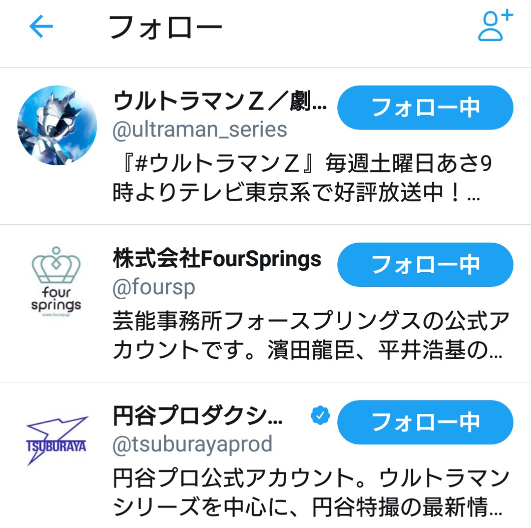 開設して直ぐにフォローしたアカウントが事務所と円谷関係なの流石龍臣プロ