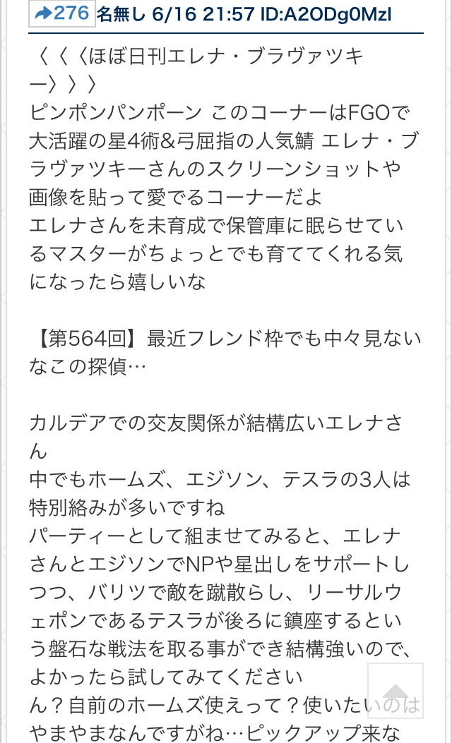 雑談から相談、報告や攻略、盛り上がりたい話題などお気軽に。リーク・解析情報等は禁止です。荒らし・誹謗中傷等は無視し、報告・NGにて対応してください。二次創作画像は転載可能な物に限り、その際必ず引用元を併記してください。R18関連話題、よくてよ無しのガチャ結果、実装から2週間以内のシナリオ及び最終再臨や霊衣解放の画像や話題は専用スレにてお願いします。