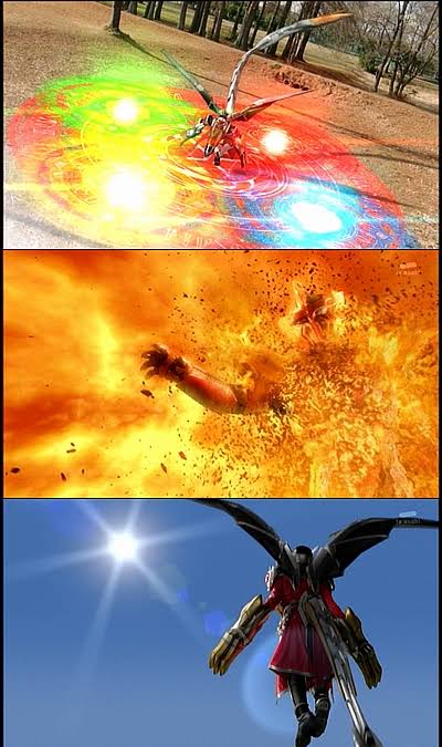 チート防御にはチート攻撃をぶつけるっていう最適解やぞ。トーマくんとリリィの実力がアレなのと、本編が休載からの掲載雑誌休刊という事実上の打ち切りコンボ食らっちゃったから本領は発揮できてないけど、暴走モードの時点でエクリプス・ゼロのチートっぷりの片鱗は見えてるし、制御状態で大暴れできればそりゃ強いよ。>>105