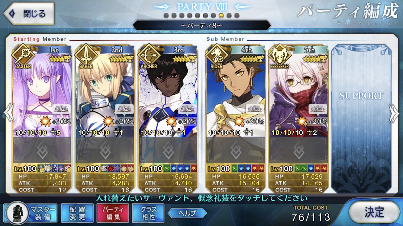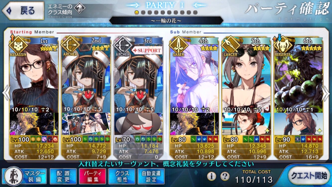 剣編成であればなぎこさんとエミヤで完全非番になりますし