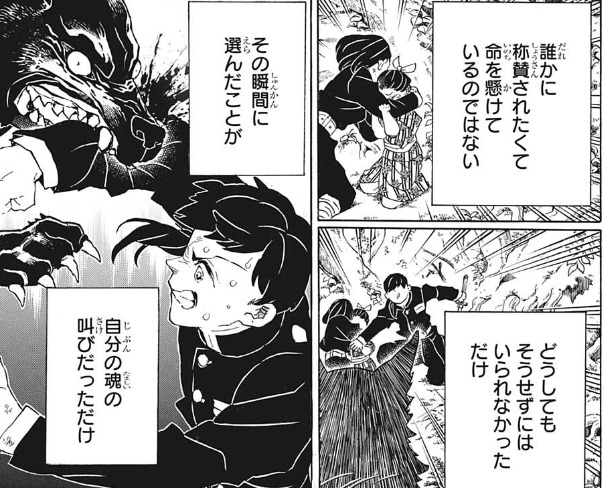 強くなれるを理由を知ればまた話は別なのかもしれないけど暫くぶりに掲載されたからか、もしくは週刊連載から離れてゆっくり休んでたからか、最終回辺りより作画が安定してるというか洗練されてる気がする鬼滅